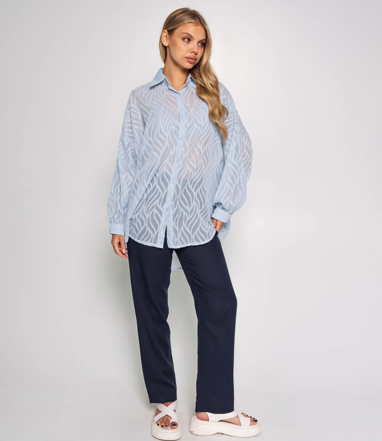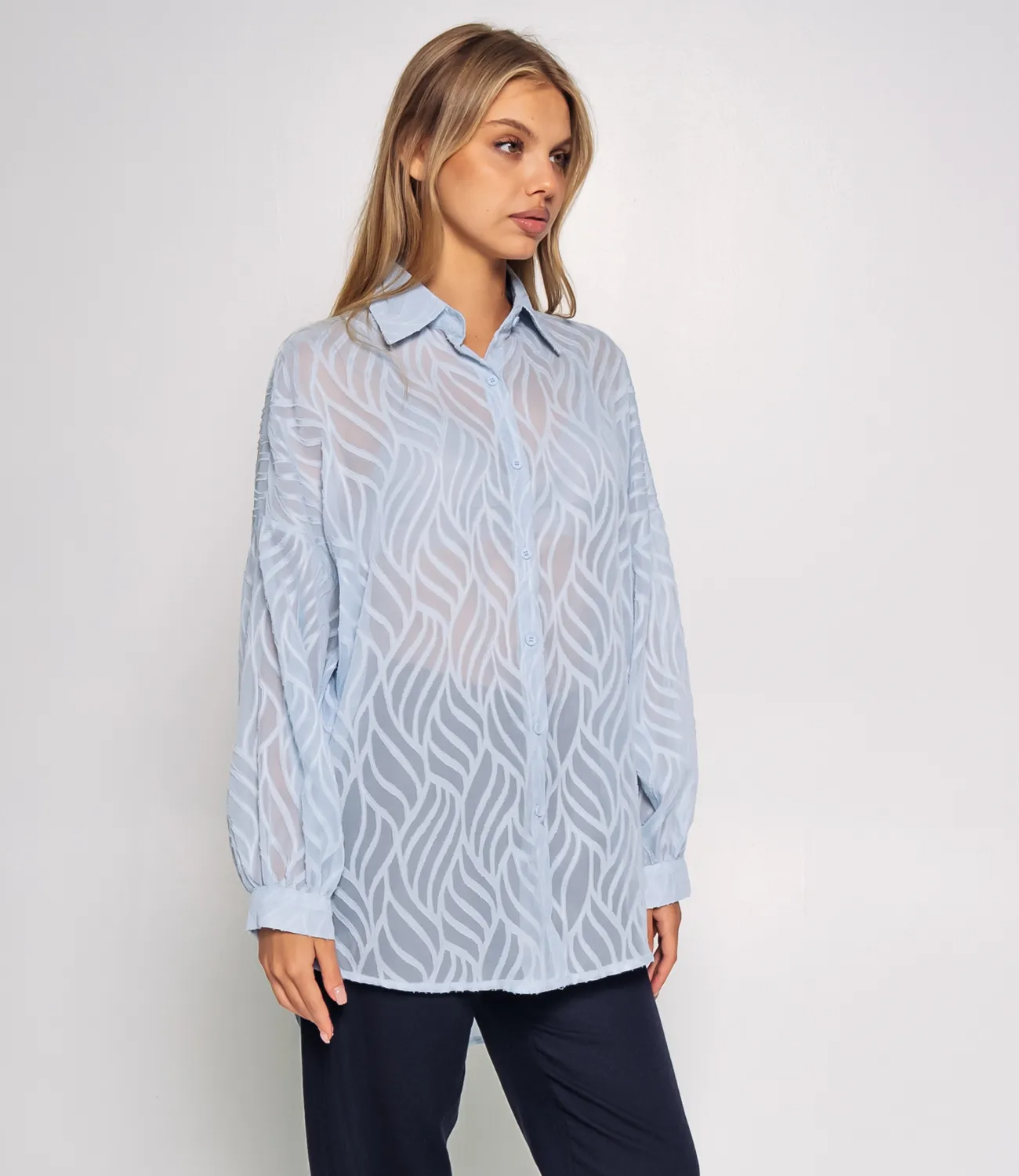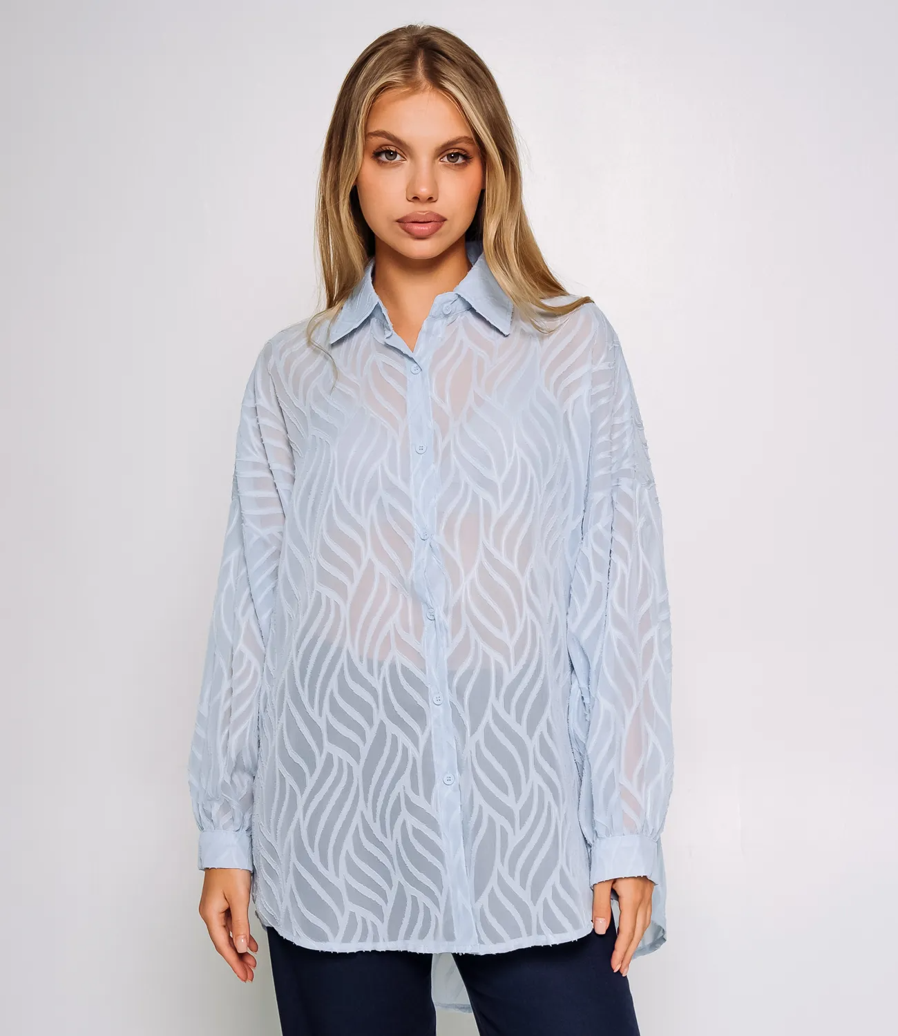 Рубашка — это универсальный элемент гардероба, который способен подчеркнуть женственность и стиль любой женщины. Эта модель станет настоящей находкой для вашего магазина, привлекая внимание покупателей своей элегантностью и высоким качеством исполнения. Изготовленная из легкой прозрачной ткани с узором из волнистых линий, рубашка создает впечатляющий динамический эффект и позволяет вашему клиенту выделиться среди других. С классическим отложным воротником и застежкой на пуговицы, спрятанные под планкой, рубашка выглядит исключительно аккуратно и стильно. Свободный объем рукавов с манжетами, застегнутыми на пуговицы, добавляет легкости и комфорта, обеспечивая свободу движений. Фасон с удлиненной длиной и слегка закругленным низом придает изделию нежный и современный вид, что делает эту модель идеальным выбором как для офисных будней, так и для вечерних выходов. Эта рубашка легко комбинируется с различными стилями — от классических брюк до джинсов и юбок, что делает её не только модным, но и функциональным выбором. Чтобы ваши клиенты без проблем могли подобрать подходящий размер, на сайте предусмотрена таблица размеров. Предложенная нами цена является доступной для оптовых закупок, что делает эту рубашку отличным дополнением к вашему ассортименту. Обеспечьте своим покупателям возможность подчеркнуть свою индивидуальность и стиль с помощью этой изысканной модели рубашки! Рост модели 168 см., 89-63-90.