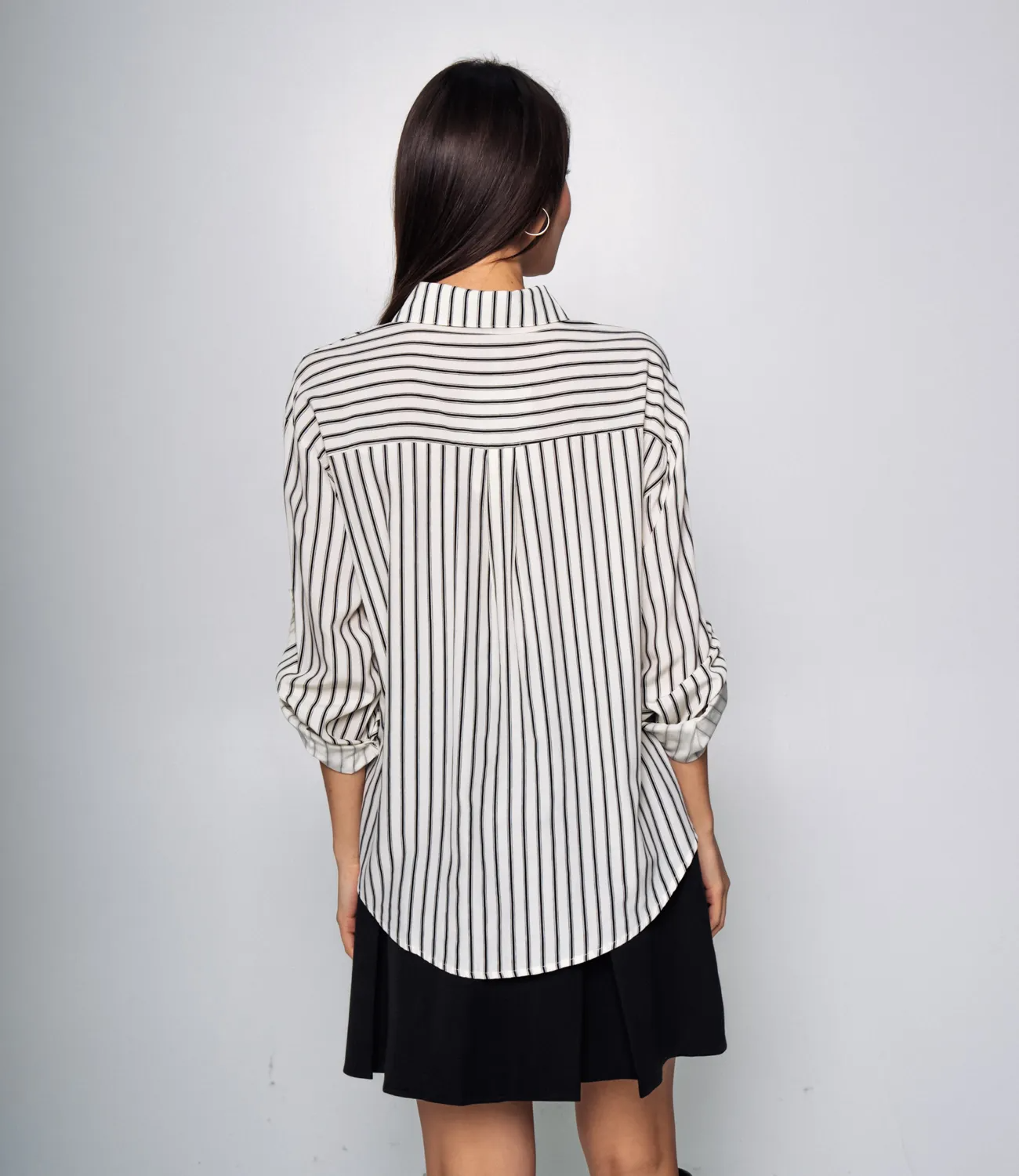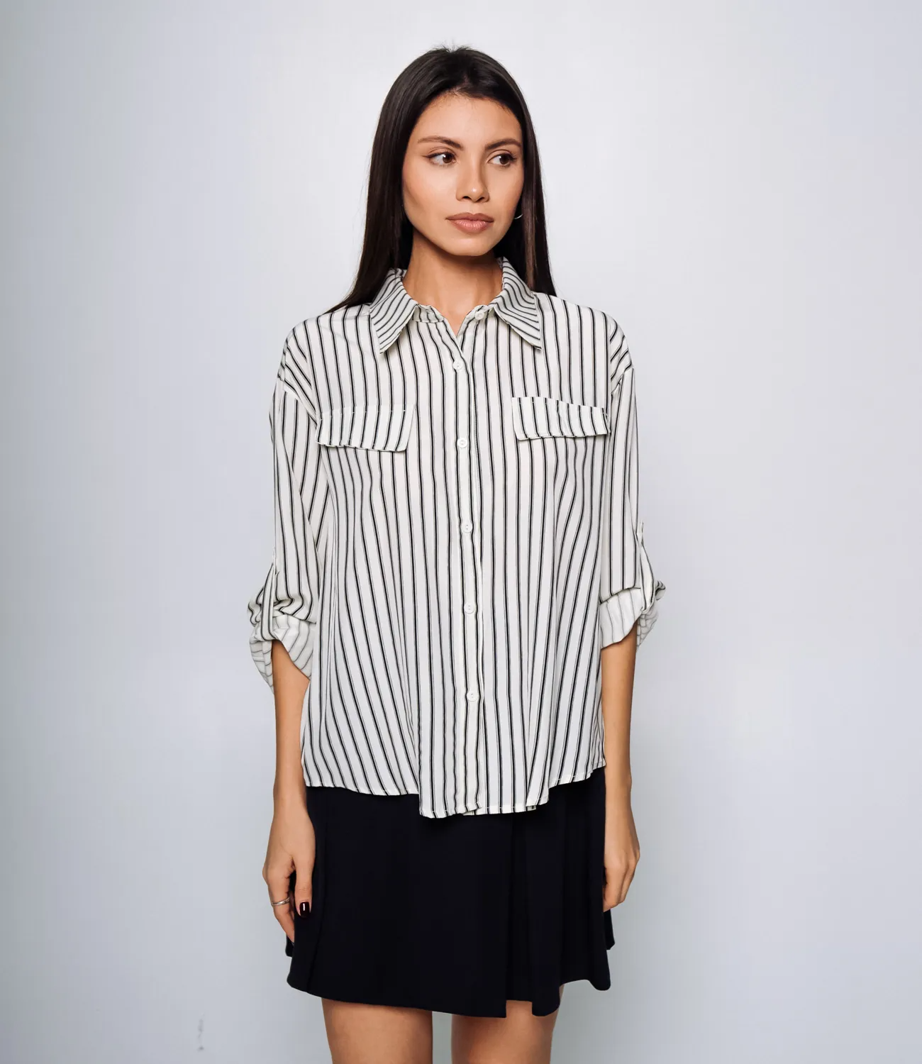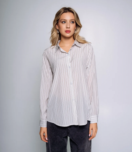 Рубашка – это элемент гардероба, который подчеркивает женственность любой представительницы прекрасного пола. Модель рубашки в полоску отлично подойдет для стильных образов. Она выполнена в универсальном стиле, который легко комбинировать с разными предметами одежды. Рубашка состоит из приятного на ощупь материала, что обеспечивает комфорт в течение всего дня. Ее выбирают покупательницы, которые ценят сочетание качества и цены. Фасон подчеркивает привлекательность фигуры. Компания-производитель знает, как разработать стильные и уникальные решения. Для пошива использована ткань 100% полиэстер, которая характеризуется отличным качеством. Даже после большого количества стирок изделие не утратит первоначальной красоты. Вы обязательно будете носить его с радостью. Обратите внимание на цвет. Он является насыщенным и полностью соответствует фотографии на странице. Чтобы вы были уверены в размере, мы представили на сайте таблицу. Воспользовавшись ею, вы сможете сами обмерить себя и удостовериться. Предложенная нами цена является доступной. Не откажите себе в удовольствии быть элегантной! Рост модели: 164, параметры: 83-61-89.