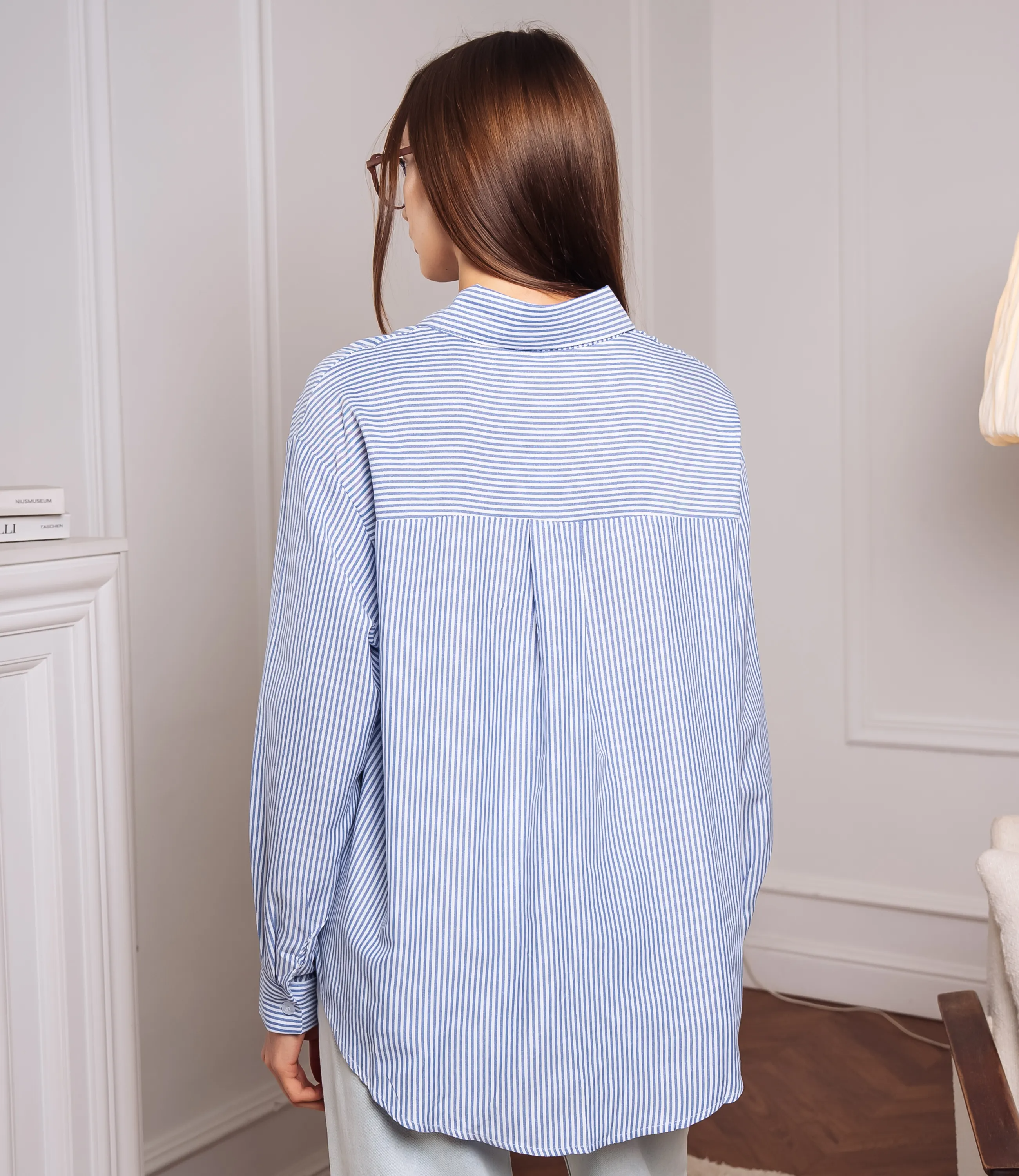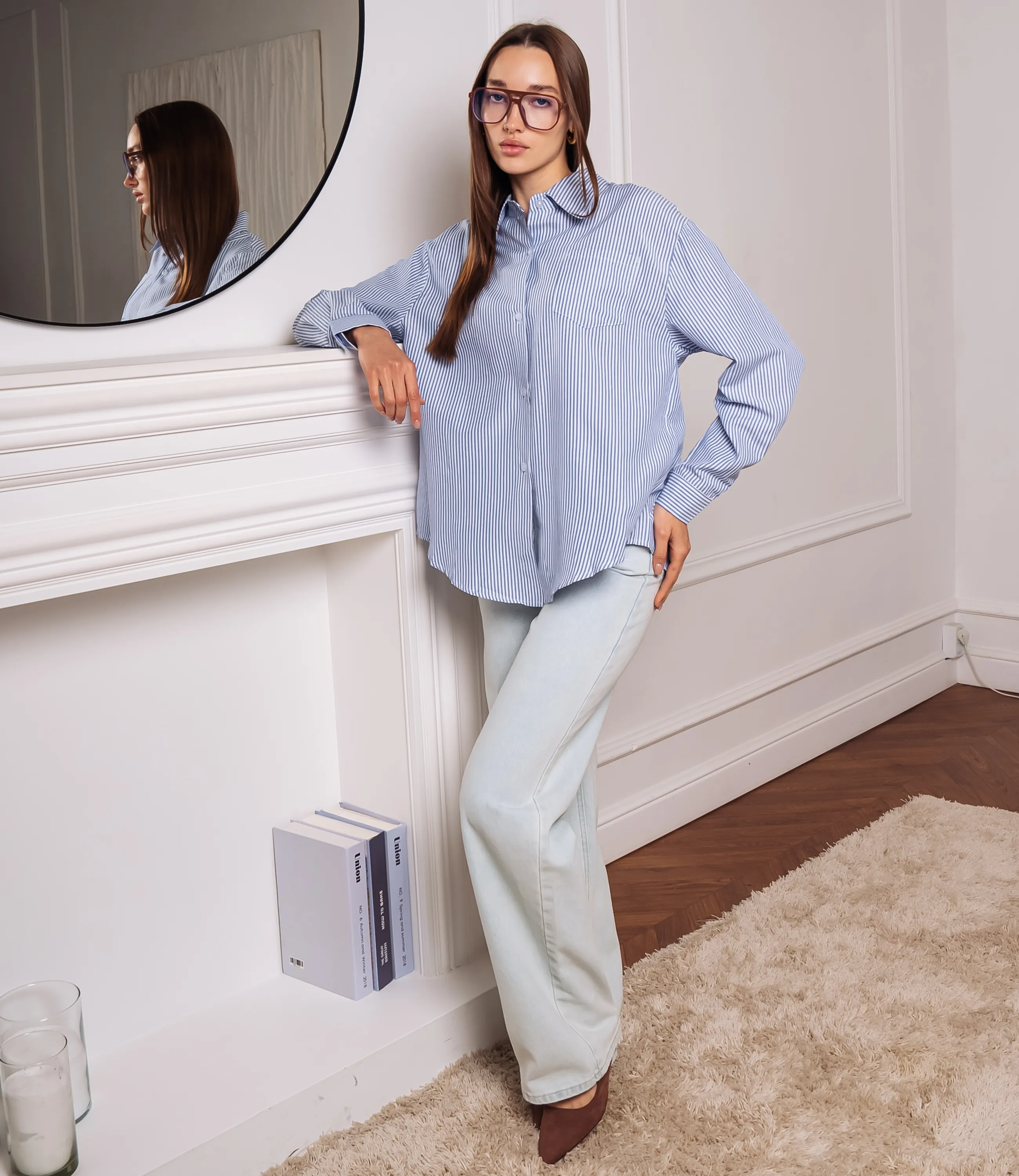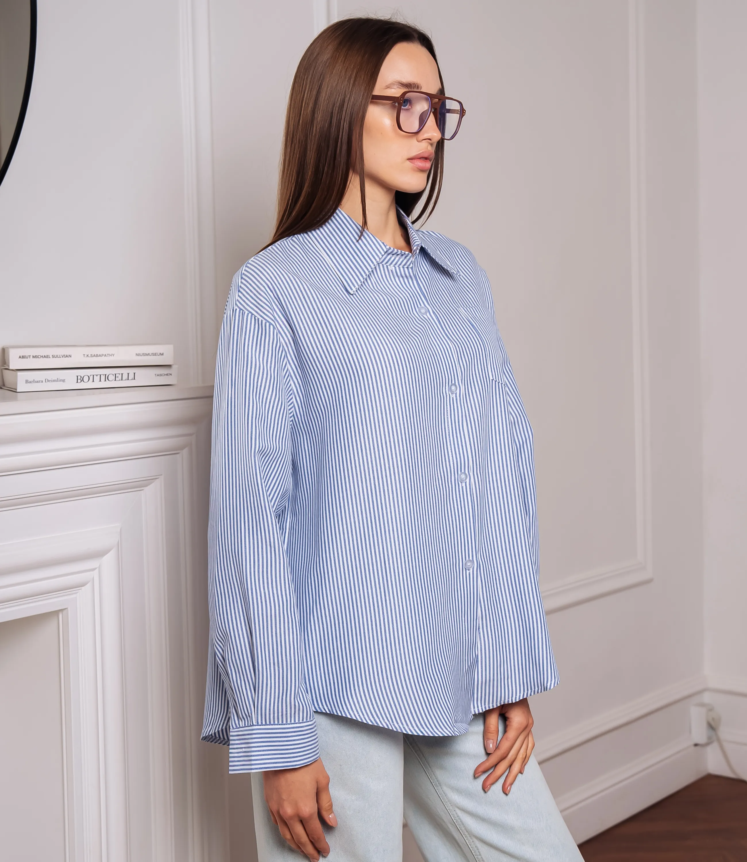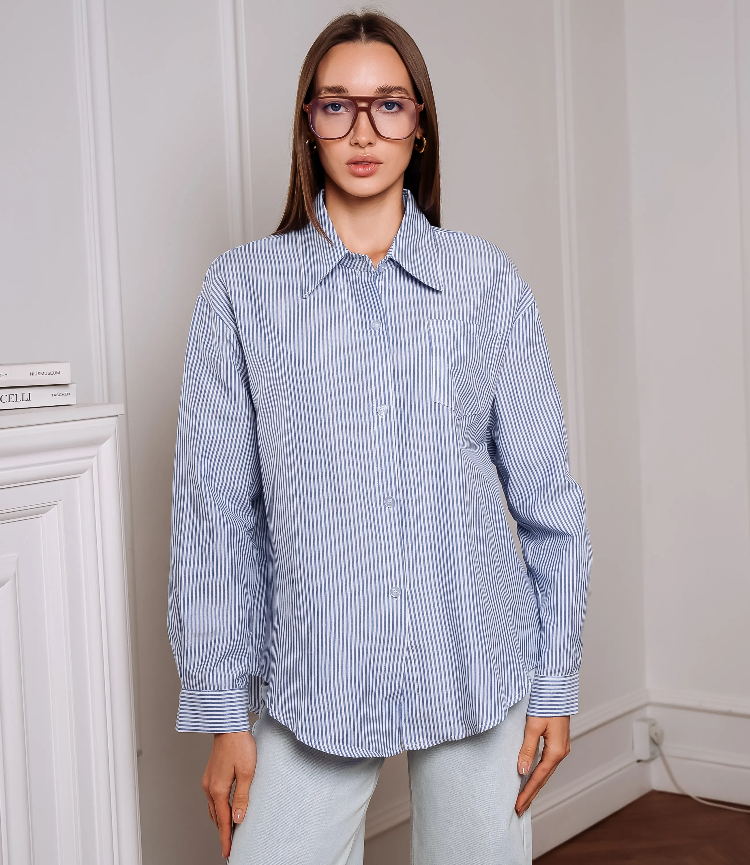 Рубашка - это часть гардероба, которая подчеркивает уникальность каждой женщины. Рубашка выполнена из лёгкой ткани в тонкую вертикальную полоску, свободного прямого кроя с чуть расширенным силуэтом снизу; длина спускает чуть ниже бёдер. Воротник классический с аккуратными лацканами, планка с пуговицами скрытая частично, с ровными строчками по линии застёжки. Плечи слегка опущены, рукава длинные, с прямым объёмом, заканчиваются широкими манжетами на пуговицу с продольной полоской по периметру манжета. Лиф ровный, без нагрудных вытачек, с едва заметной нагрудной петлёй или карманной складкой с левой стороны. Для пошива выбрана ткань из 80% полиэстера и 20% хлопок, которая выделяется безупречным качеством. Даже после многократных стирок рубашка не утратит первоначальной привлекательности. Вы обязательно будете носить ее с радостью. Обратите внимание на глубокий цвет. Он соответствует фотографии на сайте. Чтобы вы не сомневались в размере, мы предоставили на странице таблицу. Воспользовавшись ею, вы сможете самостоятельно сделать мерки и удостовериться. Установленная нами цена является невысокой. Не откажите себе в удовольствии быть элегантной! Рост модели 168, 85-63-92.
