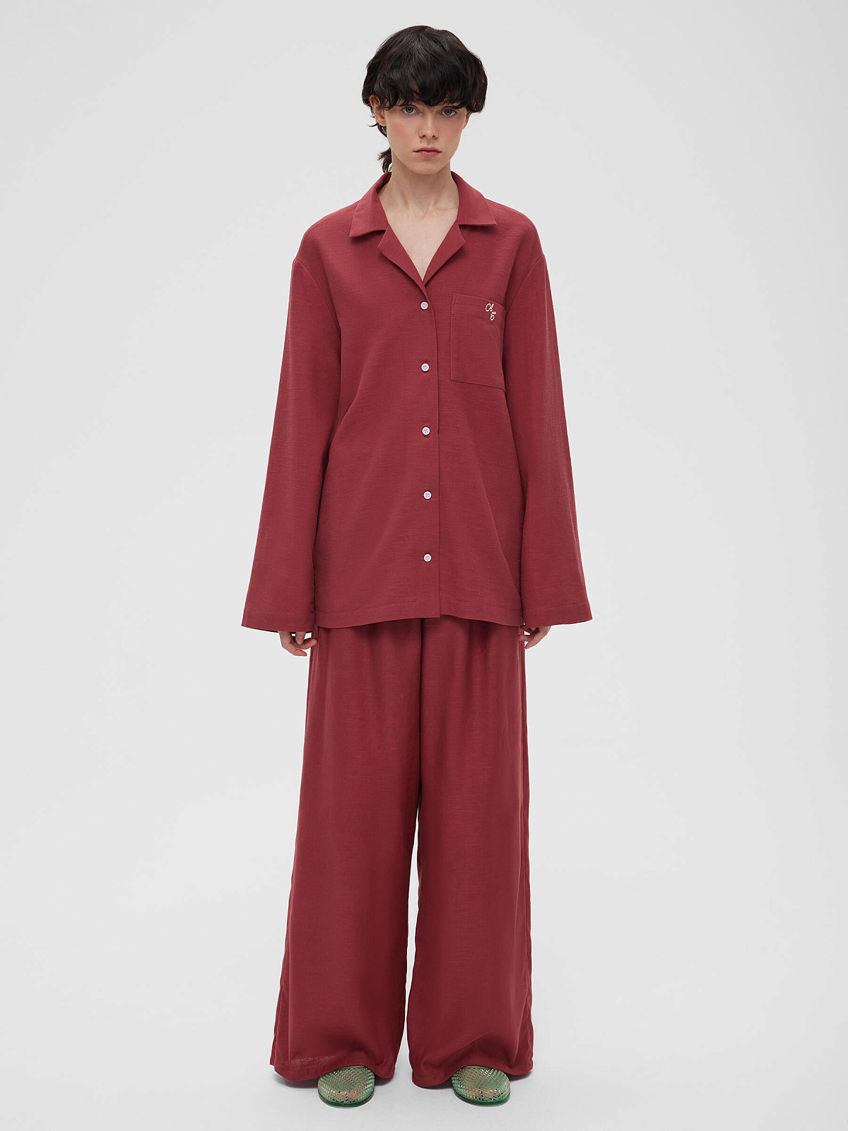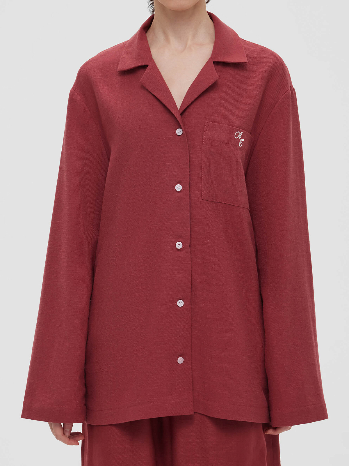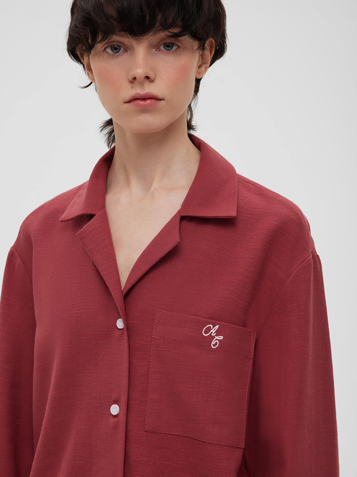 Рубашка льняная с длинным рукавом с вышивкой 0184, бордовый