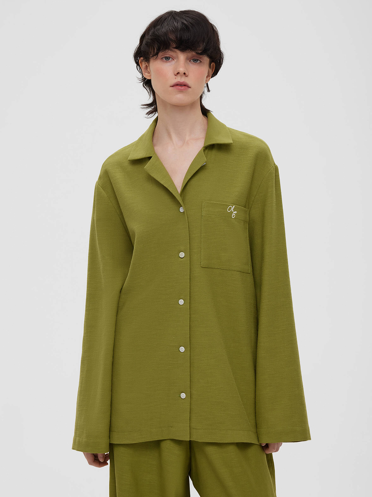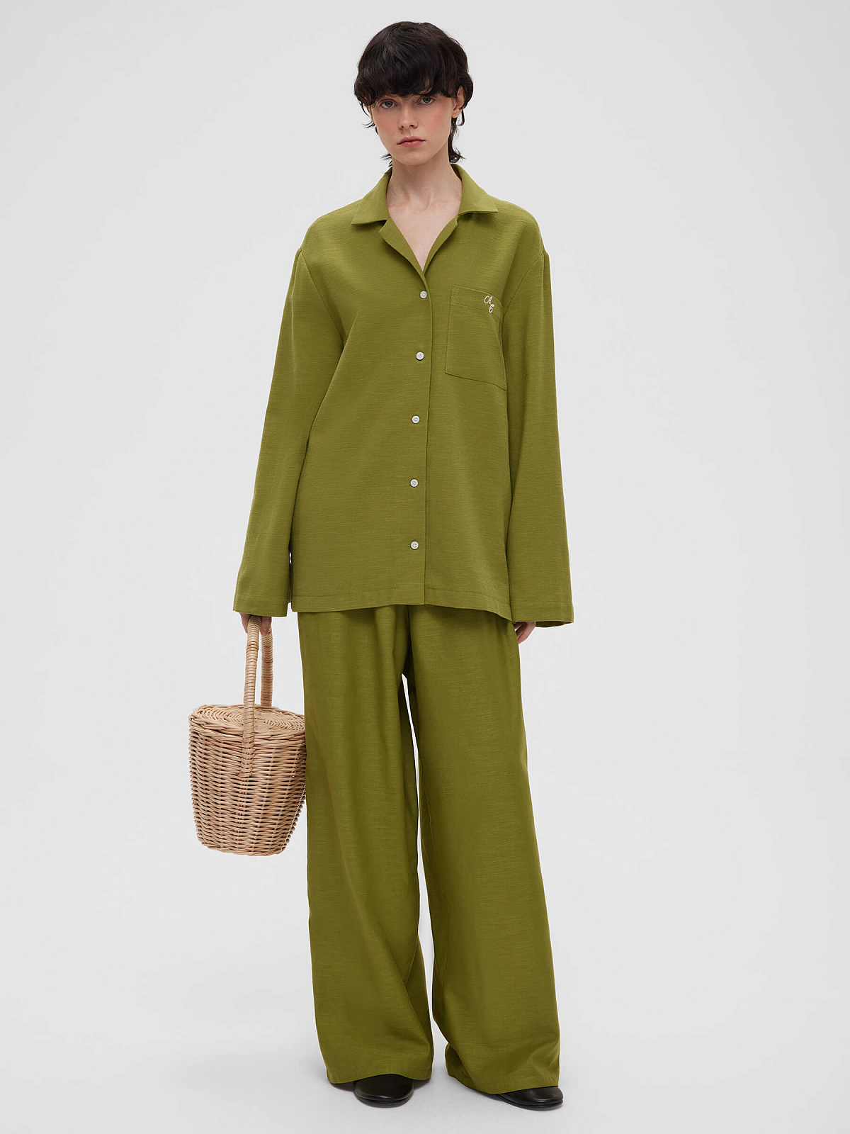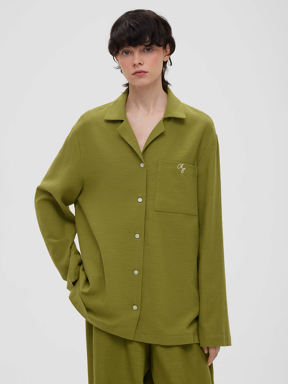 Рубашка льняная с длинным рукавом с вышивкой 0184, зеленый