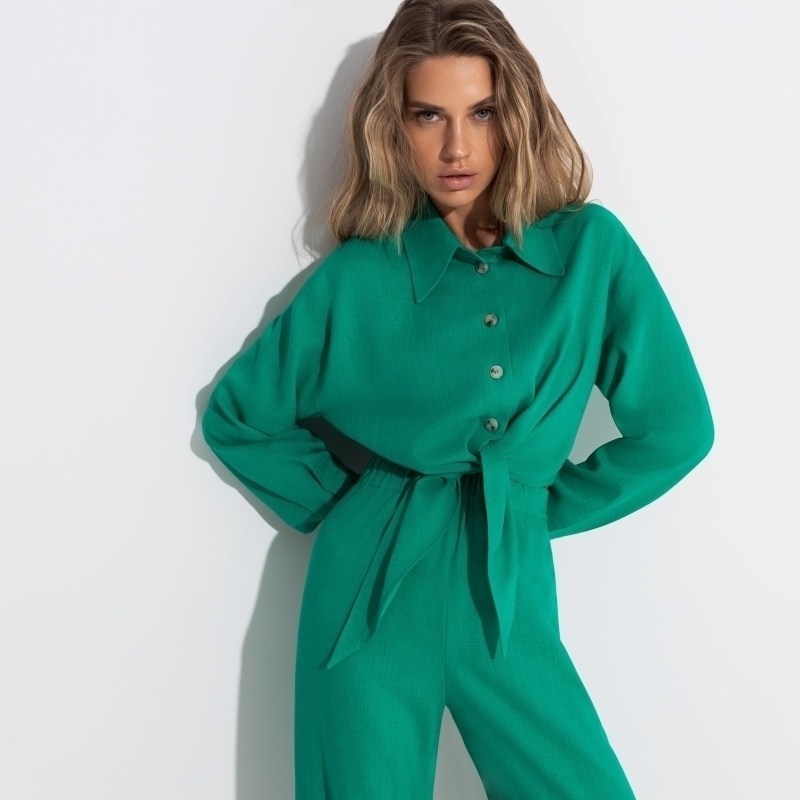 В поисках изменений мы все чаще обращаемся к природе. Какой цвет, как не зеленый, лучше всего ассоциируется с обновлением? Дышащая ткань, правильный свободный крой и трендовый зеленый оттенок сделают эту рубашку незаменимой!