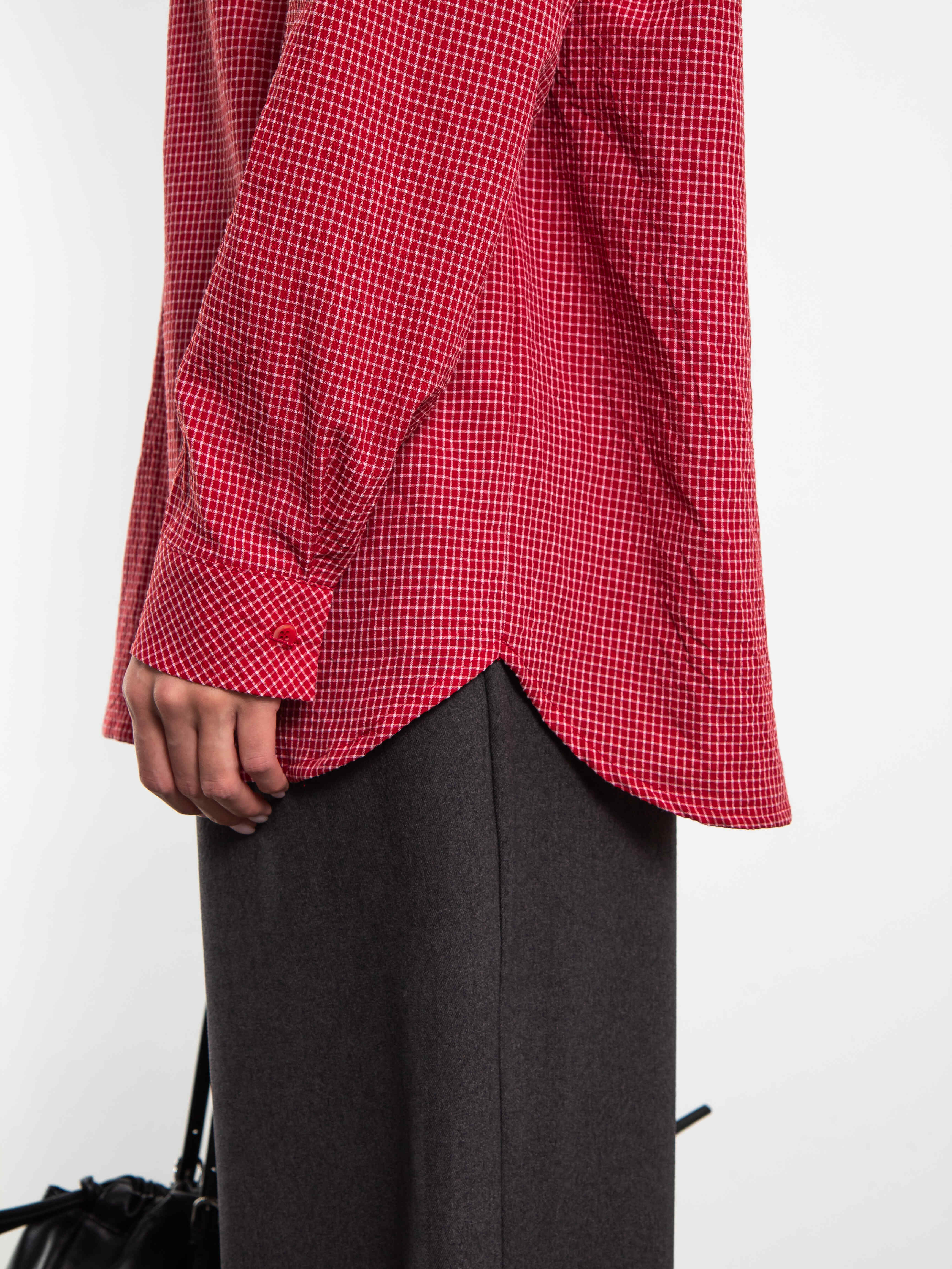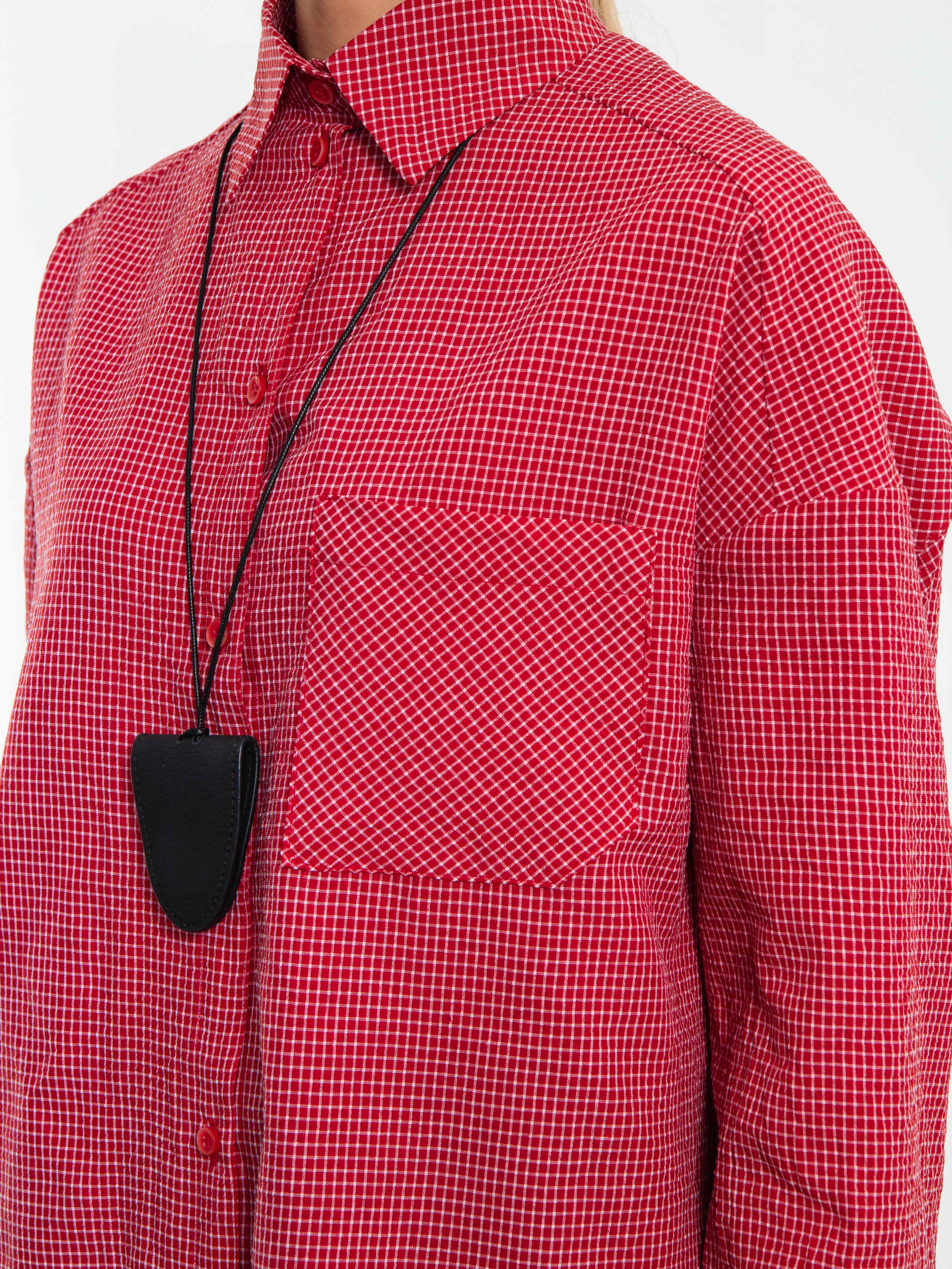 Модель отличается свободным кроем, мягкой тканью и утонченными деталями. Рубашку можно носить, как с джинсами и юбками, так и с брюками, создавая разнообразные образы от casual до полуформального стиля. Красная клетка остается актуальной тенденцией, подчеркивая женственность и индивидуальность обладательницы.