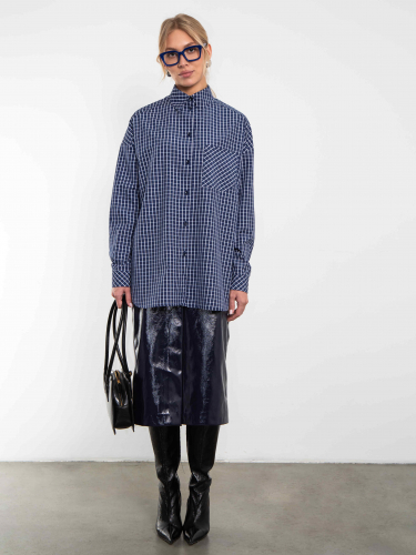 Универсальная клетчатая рубашка oversize с нагрудным карманом. Застегивается на пуговицы.