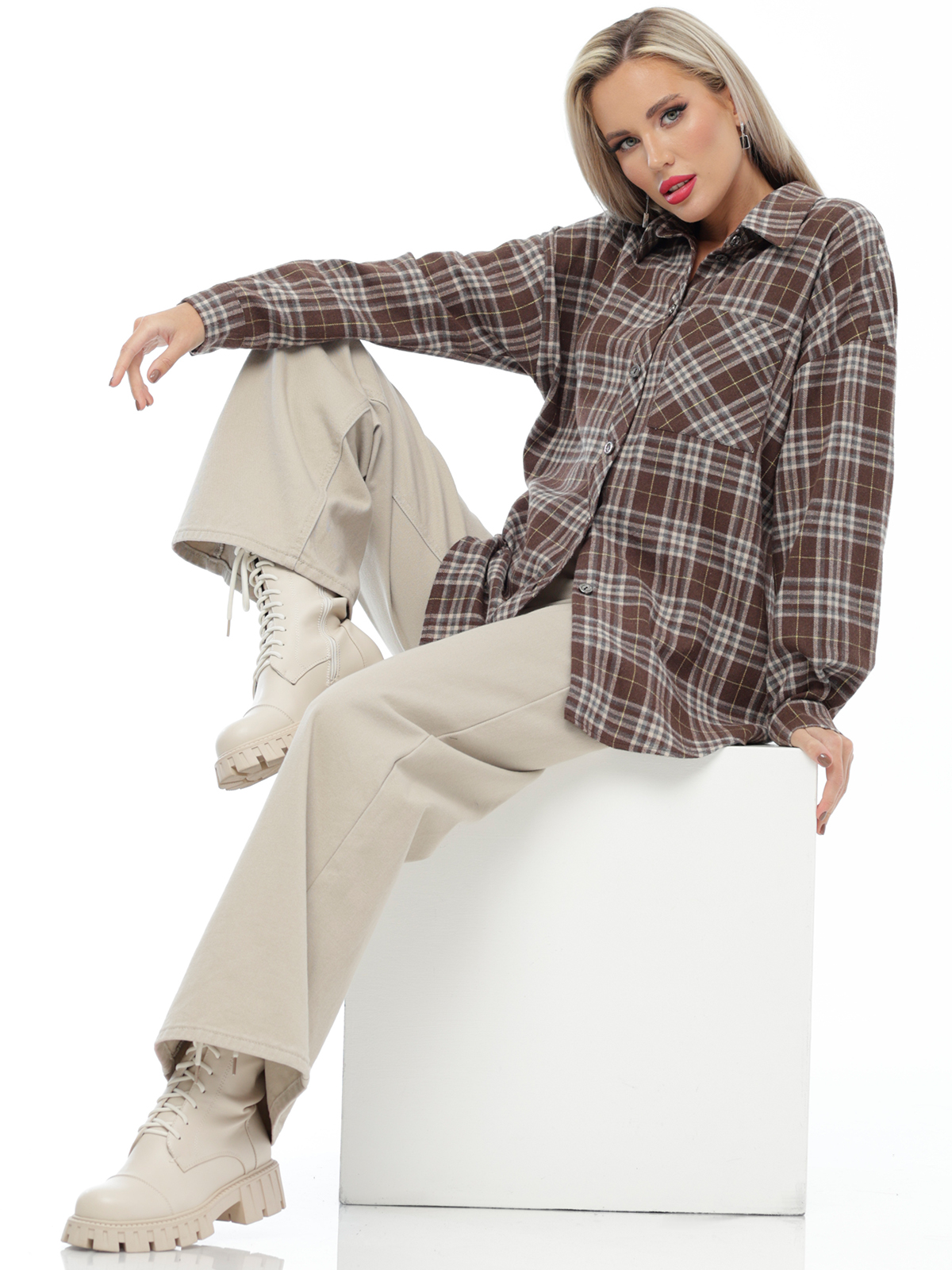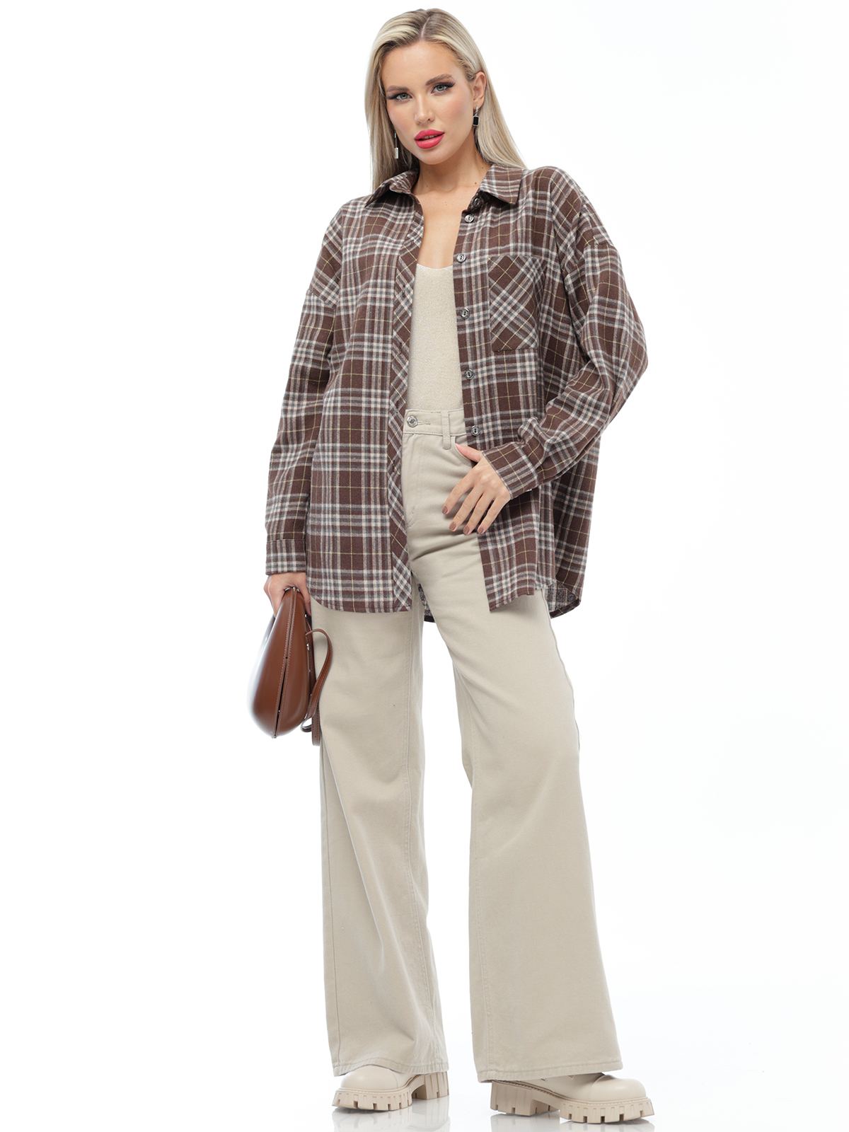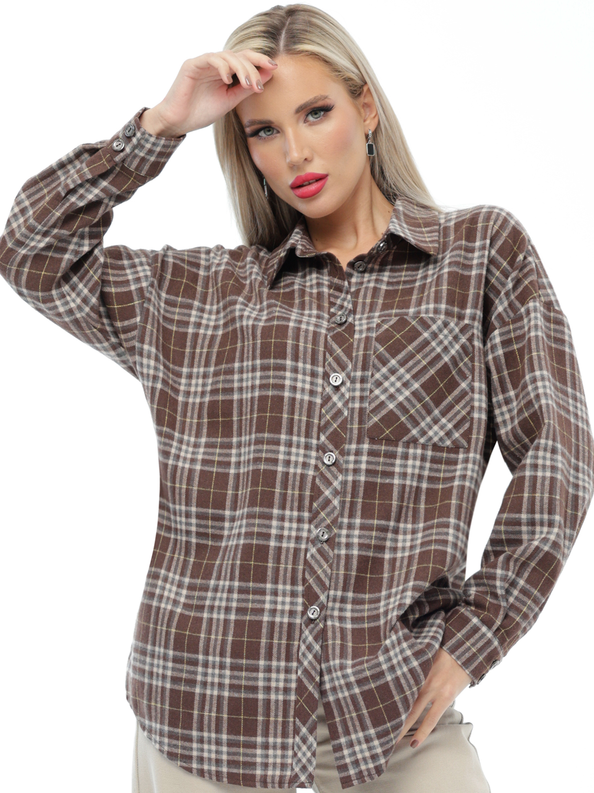 Клетчатая рубашка — отличный выбор для осени. Она стильная, удобная и функциональная. Удлинённая модель оверсайз подойдёт для любого образа. Классическая осенняя рубашка сшита из натурального хлопка. Закруглившийся низ добавляет лёгкости и динамики, а отложной воротник подчёркивает элегантность дизайна. Карманы добавляют стиля и функциональности. Клетчатая рубашка — прекрасный вариант для тех, кто ищет практичное решение на каждый день. Рубашка идеально сидит на любой фигуре, позволяя выразить свою индивидуальность без ущерба для комфорта. Лёгкая хлопковая ткань приятно ощущается на теле и хорошо пропускает воздух, что важно для повседневной одежды. Длинные свободные рукава обеспечивают свободу движений, делая эту одежду удобной для активного дня.