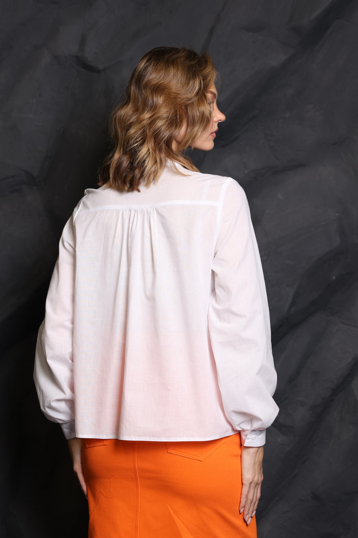 Рубашка из хлопка на кокетке с отложным воротом . Втачной рукав на манжете.