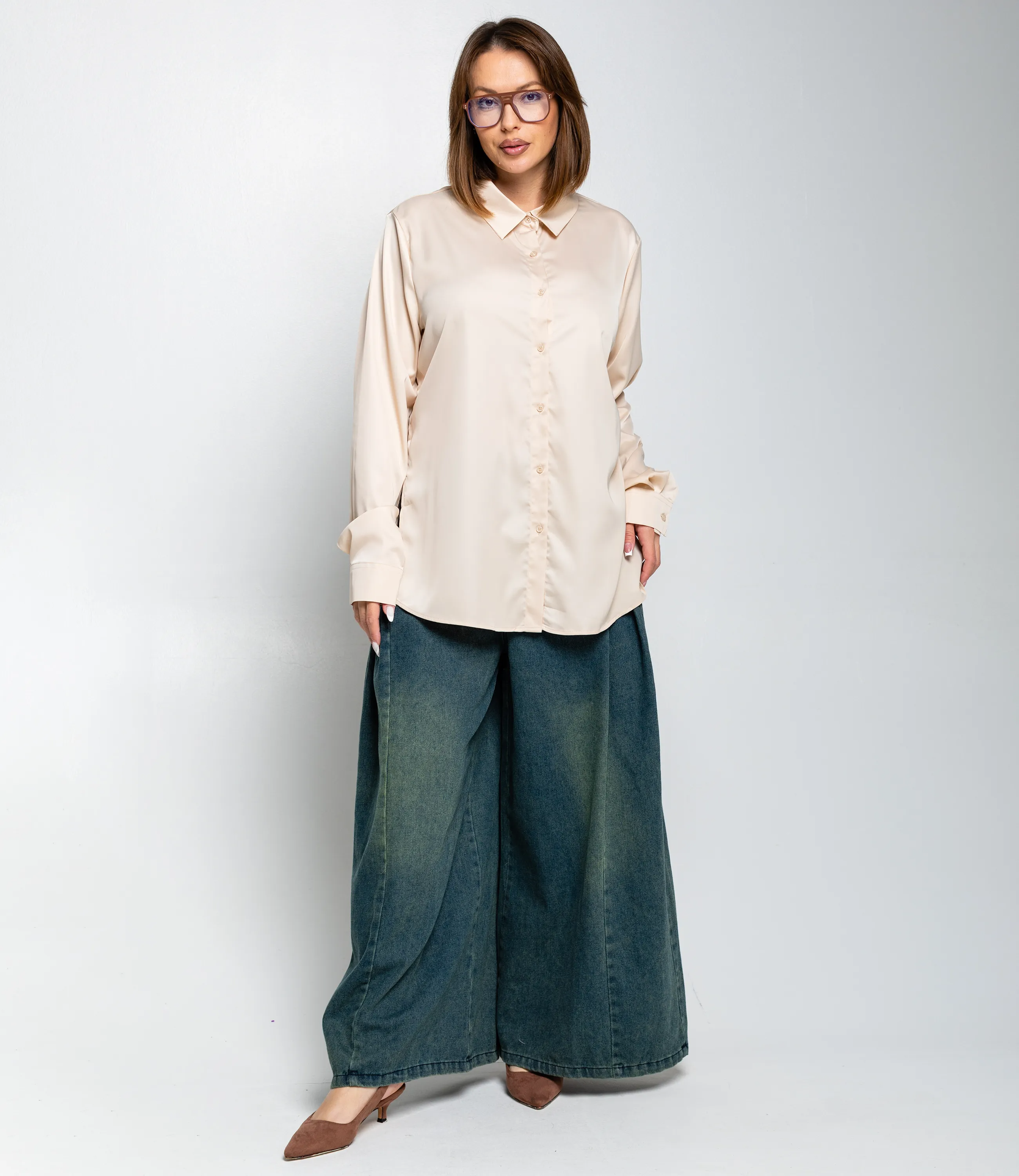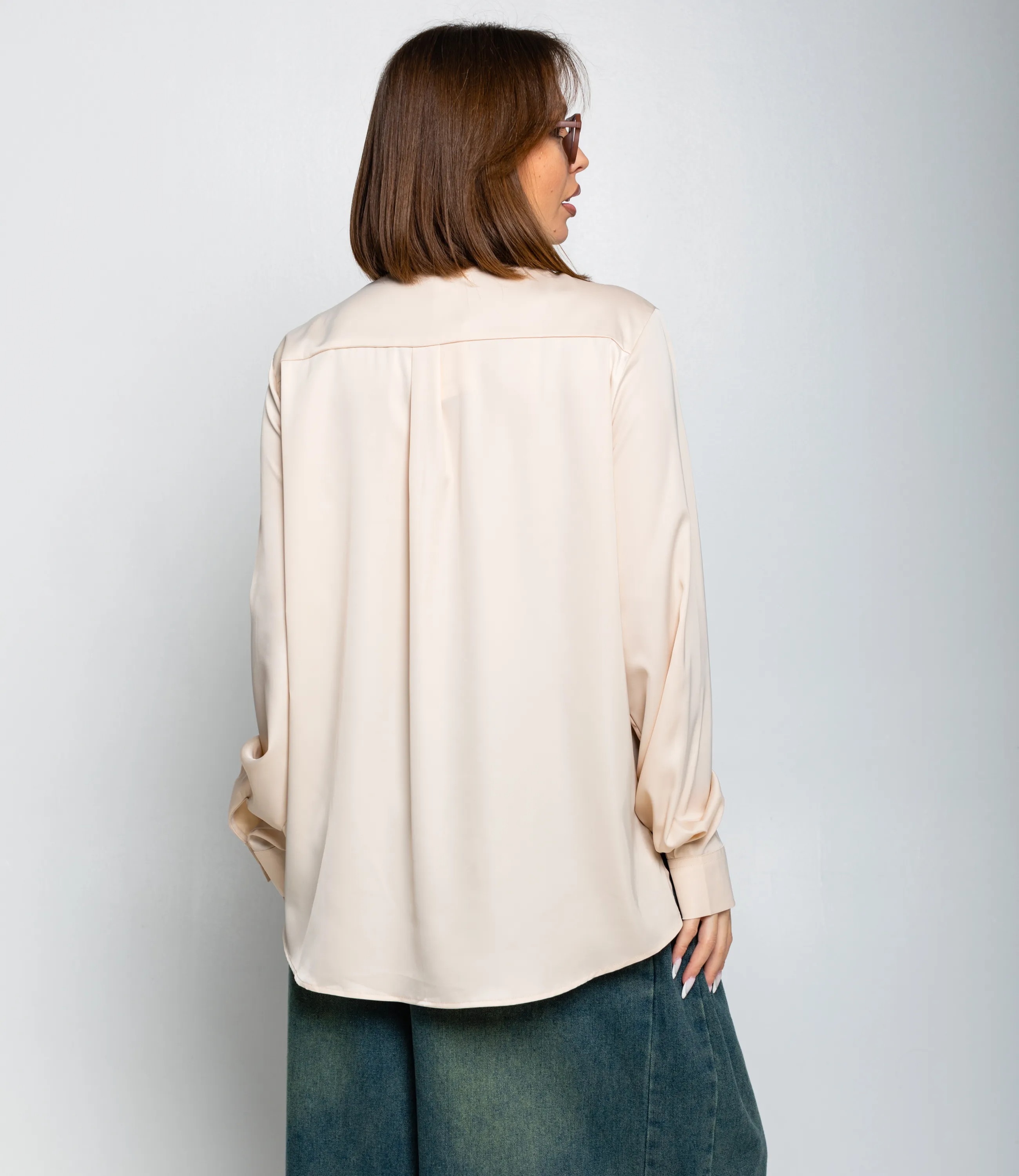 Рубашка — это часть гардероба, которая подчёркивает привлекательность и индивидуальность любой женщины. Рубашка прямого свободного кроя, слегка удлинённая, с классическим отложным воротником и центральной планкой на пуговицах; втачные длинные рукава с прямоугольными манжетами на пуговицу, округлённый нижний край с удлинением по спинке и боковыми разрезами для удобства движения, отсутствие нагрудных карманов подчёркивает минималистичную линию; лёгкий гладкий материал средней плотности с мягкой драпировкой и небольшим блеском, аккуратно обработанные швы и скрытая строчка на планке, прочные закрепки в зонах нагрузки, посадка с запасом в области плеч и груди для расслабленного, но аккуратного силуэта, универсальная базовая модель для деловых и повседневных образов. Для пошива использована ткань: 95% полиэстер, 5% спандекс. Мы предлагаем выгодные оптовые условия, гибкую ценовую политику и надёжные поставки для магазинов. Установленная цена адекватна и позволит вам формировать привлекательную наценку и обеспечивать высокую оборотность. Предложите своим покупательницам рубашку, сочетающую комфорт, качество и повседневную элегантность.