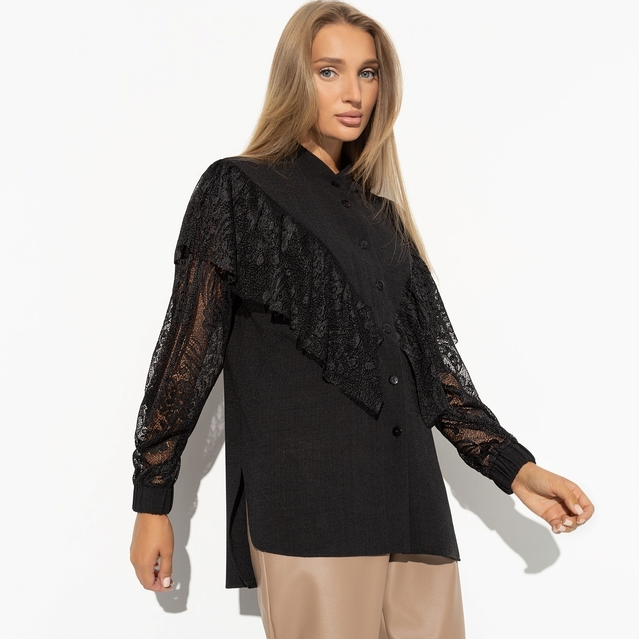 Рубашка «Only You» — это отличный товар для оптовых закупок, идеально подходящий для тех, кто хочет выделяться и привлекать внимание. Изготовленная из ткани «блури» (47% лён, 25% нейлон, 25% полиэстер, 3% спандекс), она сочетает в себе лёгкость и элегантность, что делает её востребованной среди покупателей. Мягкое кружево «гофре» с лёгкой прозрачностью создаёт утончённый и изысканный образ, добавляя женственности и смелости.