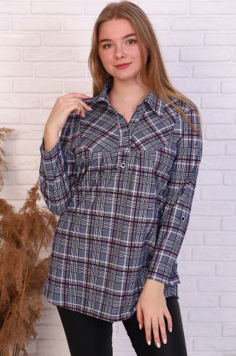Отличная модная женская рубашка из мягкого хлопка. Модель с отрезной кокеткой и накладными клапанами, спинка удлинённая. Очень стильно смотрится с джинсами. Подходит на любую фигуру, на разный возраст.