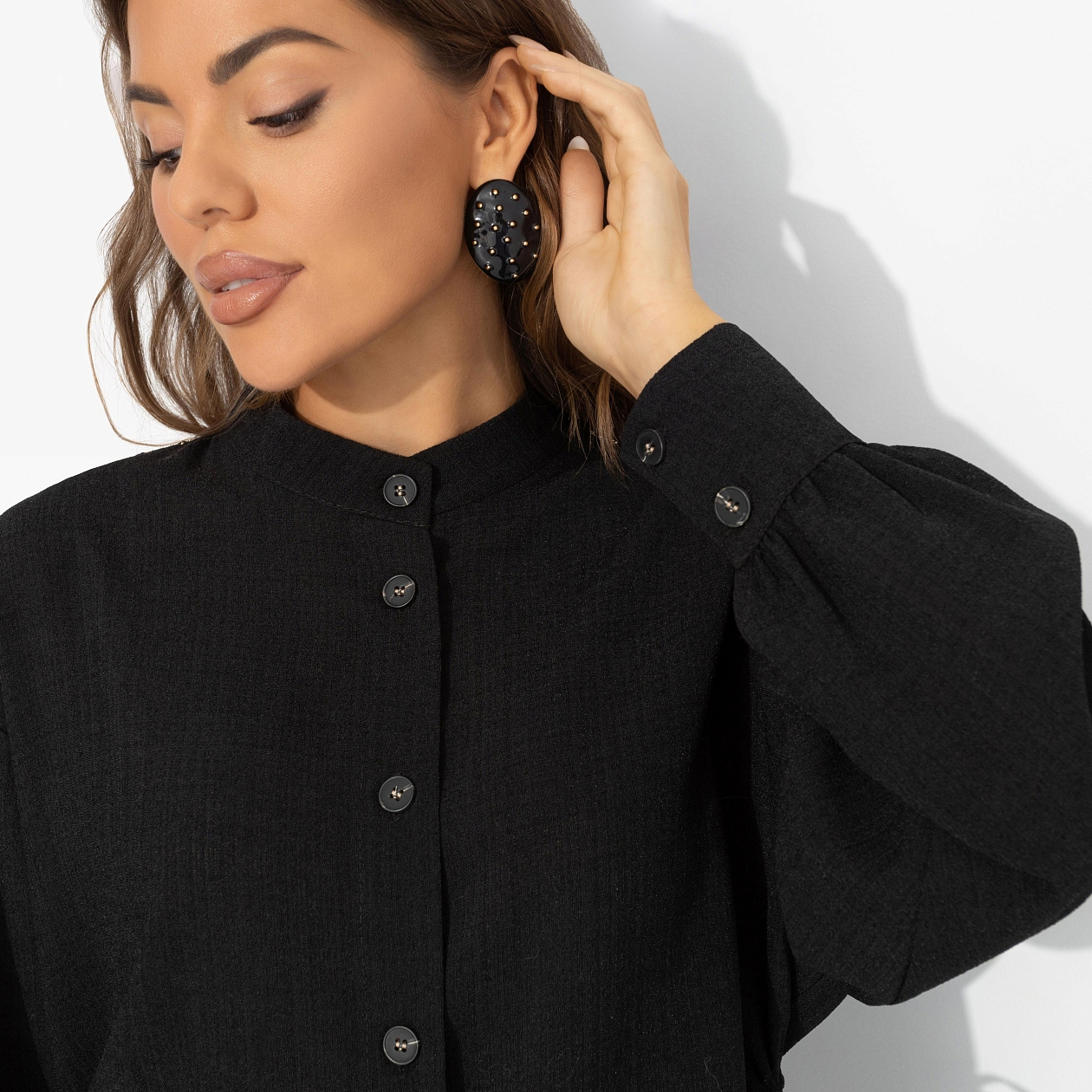 Рубашка с ажурной спинкой и сборками, Невозможно оторваться (черная)