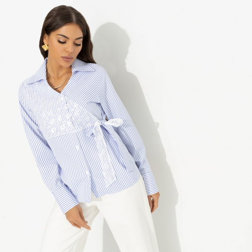 Быть заряженной на креативный лад значит с самого утра выстроить творческую стратегию. Матча-латте вместо привычного кофе, растяжка под классическую музыку вместо рутинных приседаний и рубашка с кружевом от CHARUTTI вместо базовой белой. Рубашка прямого силуэта. Дополнена акцентным вшитым кружевом на передней стороне изделия. Изделие застегивается на пуговицы. Хорошо смотрится в заправленном виде.
