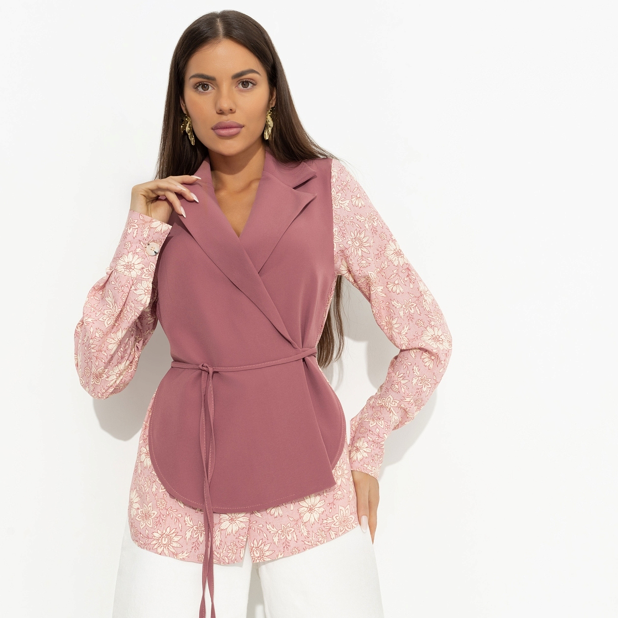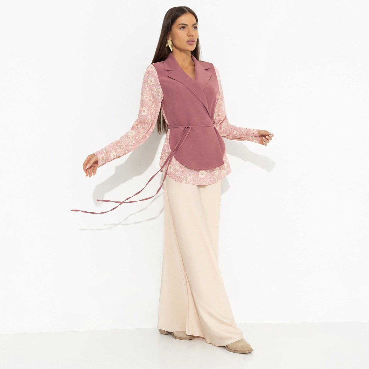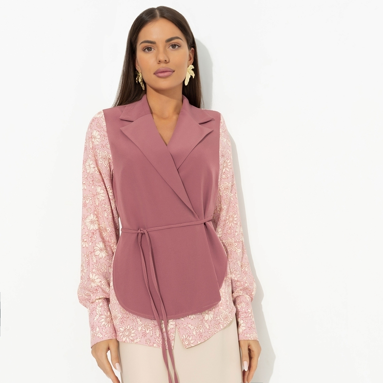 Все началось с записи на первой странице ежедневника: «Хочу быть боссом!». Потом закрутилось – дело мечты, много работы, литры кофе и сотни страниц подписанных документов. И теперь ты в рубашке CHARUTTI сидишь в кабинете своей мечты. Рубашка с лацканами. Имитация двух разных изделий, нижний слой на пуговицах, верхний - на запах. Регулируется тонким поясом.