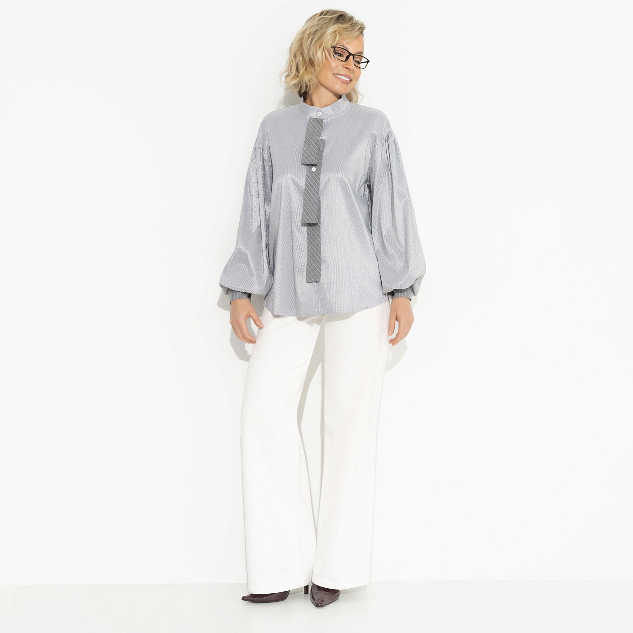 Вашу маму и тут, и там показывают. Оказавшись на торжественном меропритиии в рубашке CHARUTTI, вы стали героиней выпуска о стильных людях. Выпуск вышел, когда вся ваша семья собралась у монитора. Так вышло случайно, конечно же! Рубашка свободного кроя. Воротник-стойка. Линия пуговиц дополнена объемным несъемным декором. Линия плеча спущена. Манжеты из контрастного материала. Изделие хорошо смотрится в заправленном виде и навыпуск.