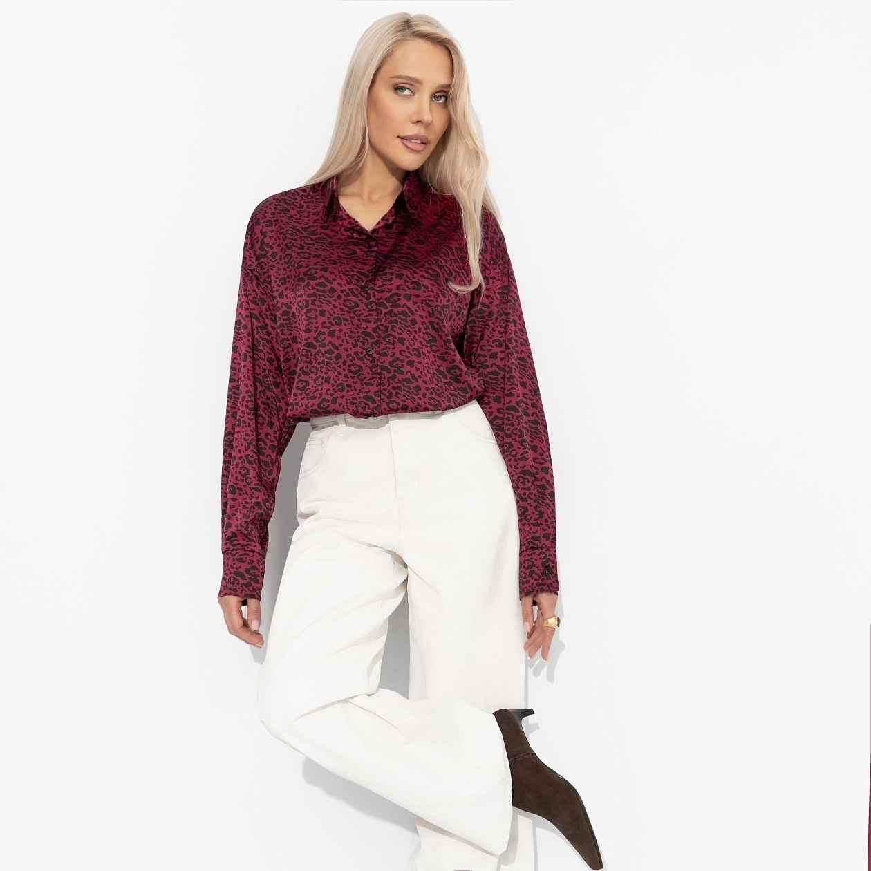 Как насчет того, чтобы сделать смелое заявление?! Рубашка ЧАРУТТИ одновременно и бордовая, и с леопардовым принтом. Вызов, не иначе. Мы знаем, что правила созданы, чтобы их нарушать. Но делать это нужно максимально красиво. Рубашка свободного кроя. Изделие удлиненное. Хорошо смотрится в заправленном виде и навыпуск. Материал изделия с блеском. Рубашка застегивается на пуговицы. Задняя часть изделия чуть длиннее передней.