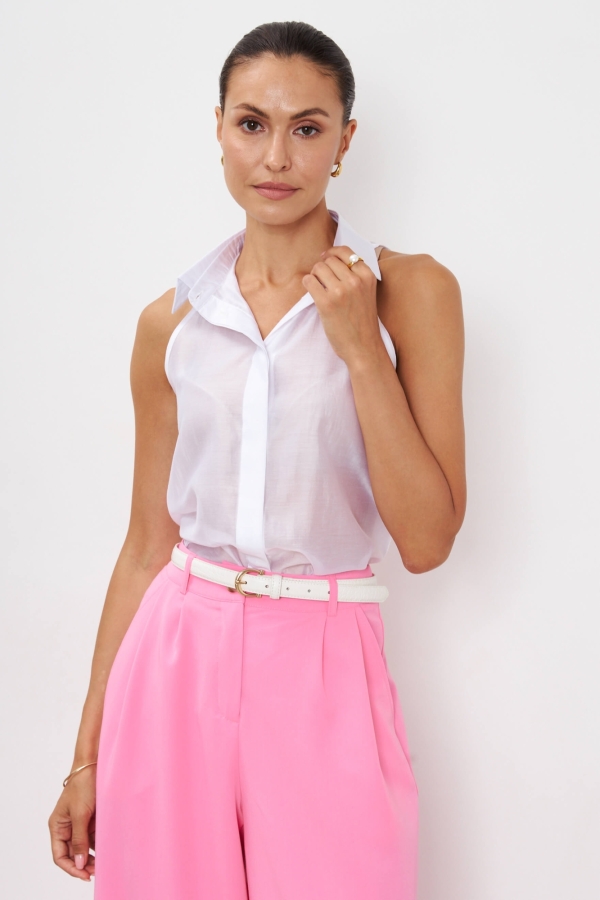 Легкая блуза из вискозной органзы. Модель свободного силуэта. По переду супатная застежка. Воротник отложной со стойкой.