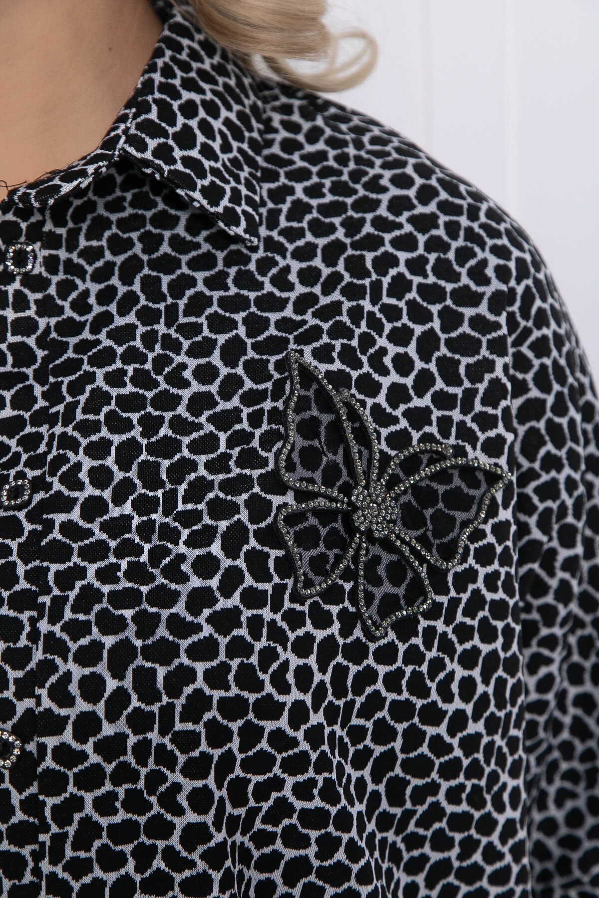 Стильная рубашка свободного кроя, выполненная по типу «летучая мышь», станет вашим верным спутником в создании модных и комфортных образов. Её элегантный воротник рубашечного типа гармонично дополняет общий вид, а декоративный элемент в виде бабочки делает образ завершённым. Эта рубашка прекрасно сочетается как с брюками, так и с юбками, позволяя вам создавать разнообразные варианты на каждый день. Она станет идеальным выбором для тех, кто ценит стиль и свободу движений!