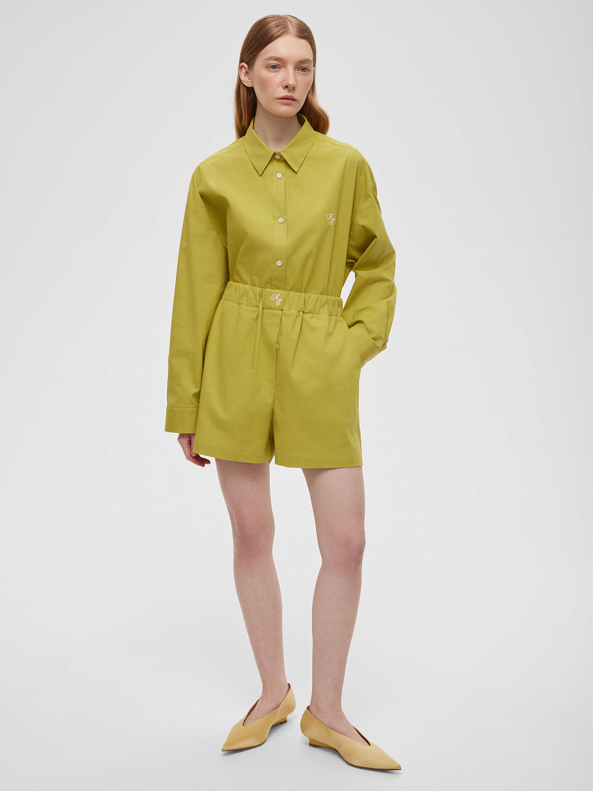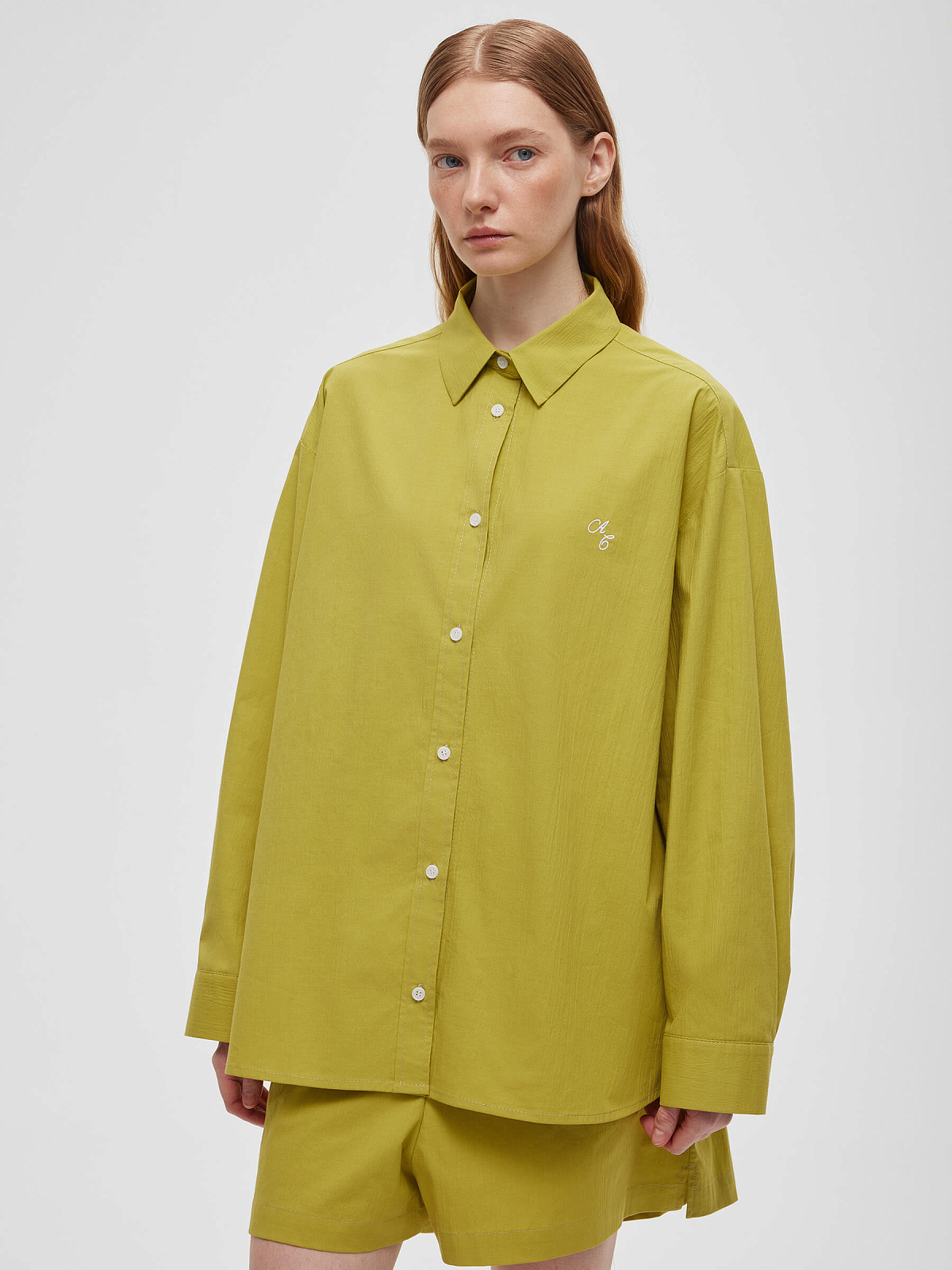 Рубашка свободного кроя из хлопка 0128, оливковый