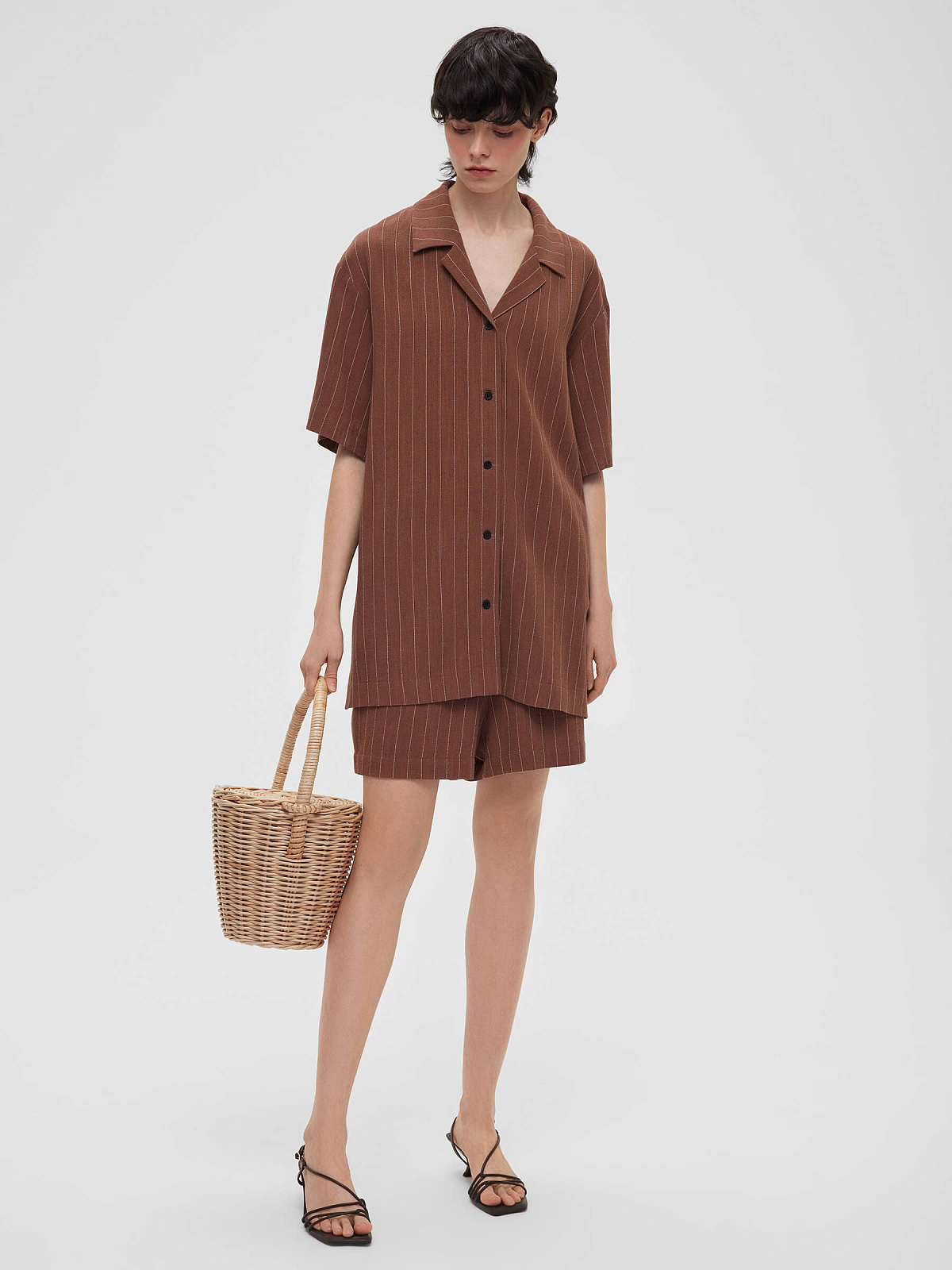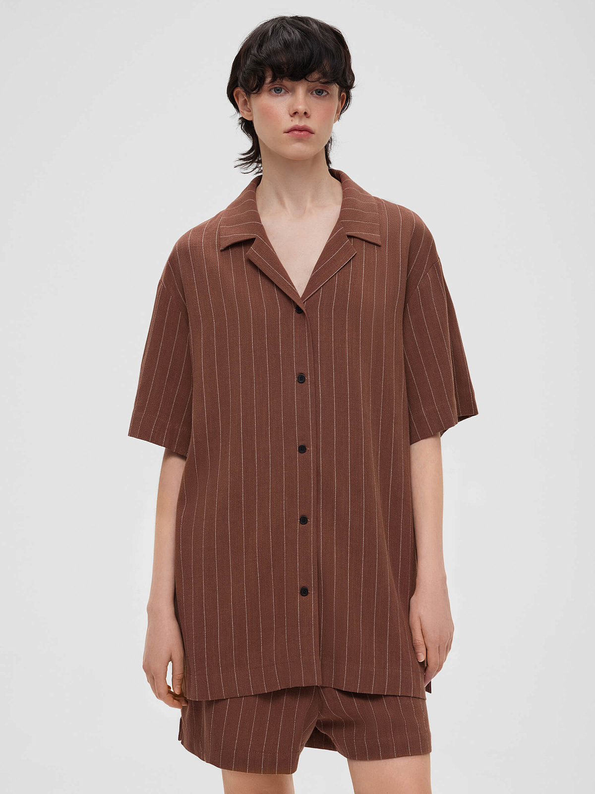 Рубашка свободного кроя с коротким рукавом 0202, коричневый