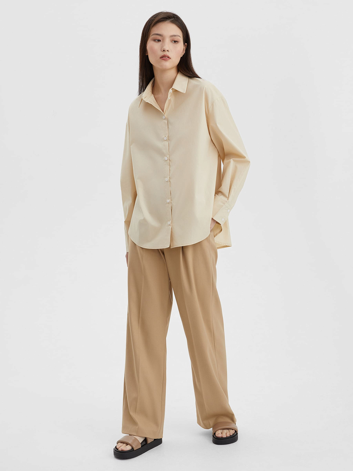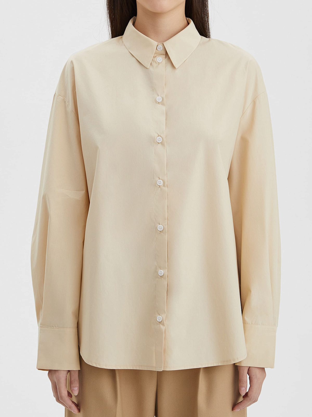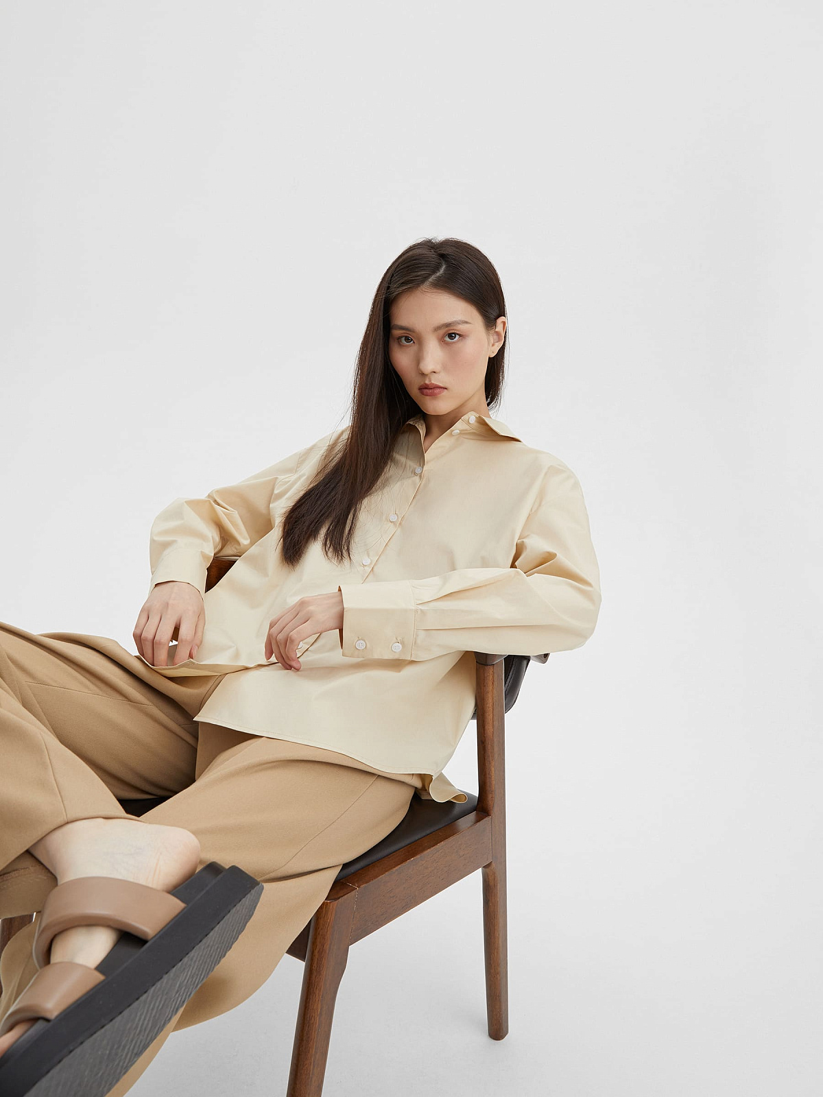 Базовая рубашка, без которой невозможно представить современный гардероб. Классическая застежка на пуговицы и воротником рубашечного типа придает ей элегантный вид. Спущенные плечи и рукава с защипами на манжетах добавляют модели оригинальности и современности.