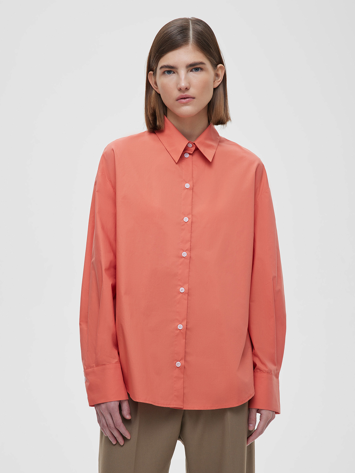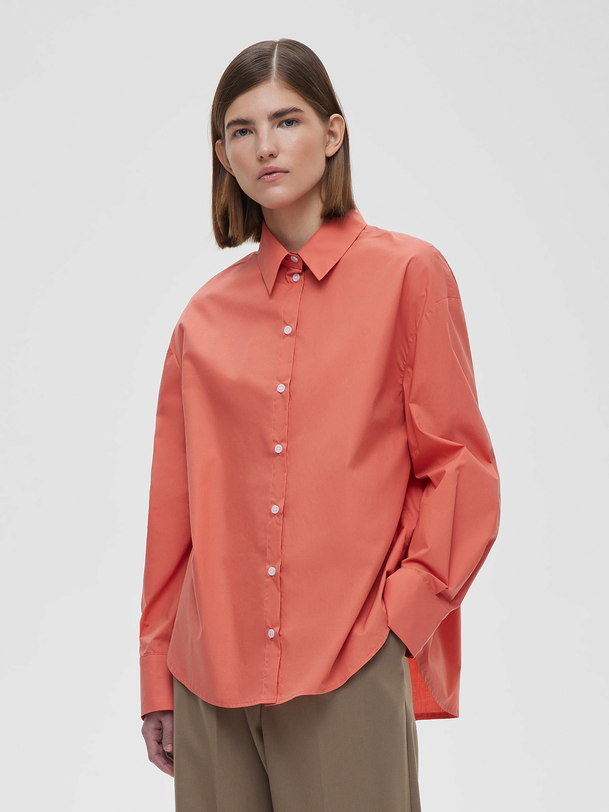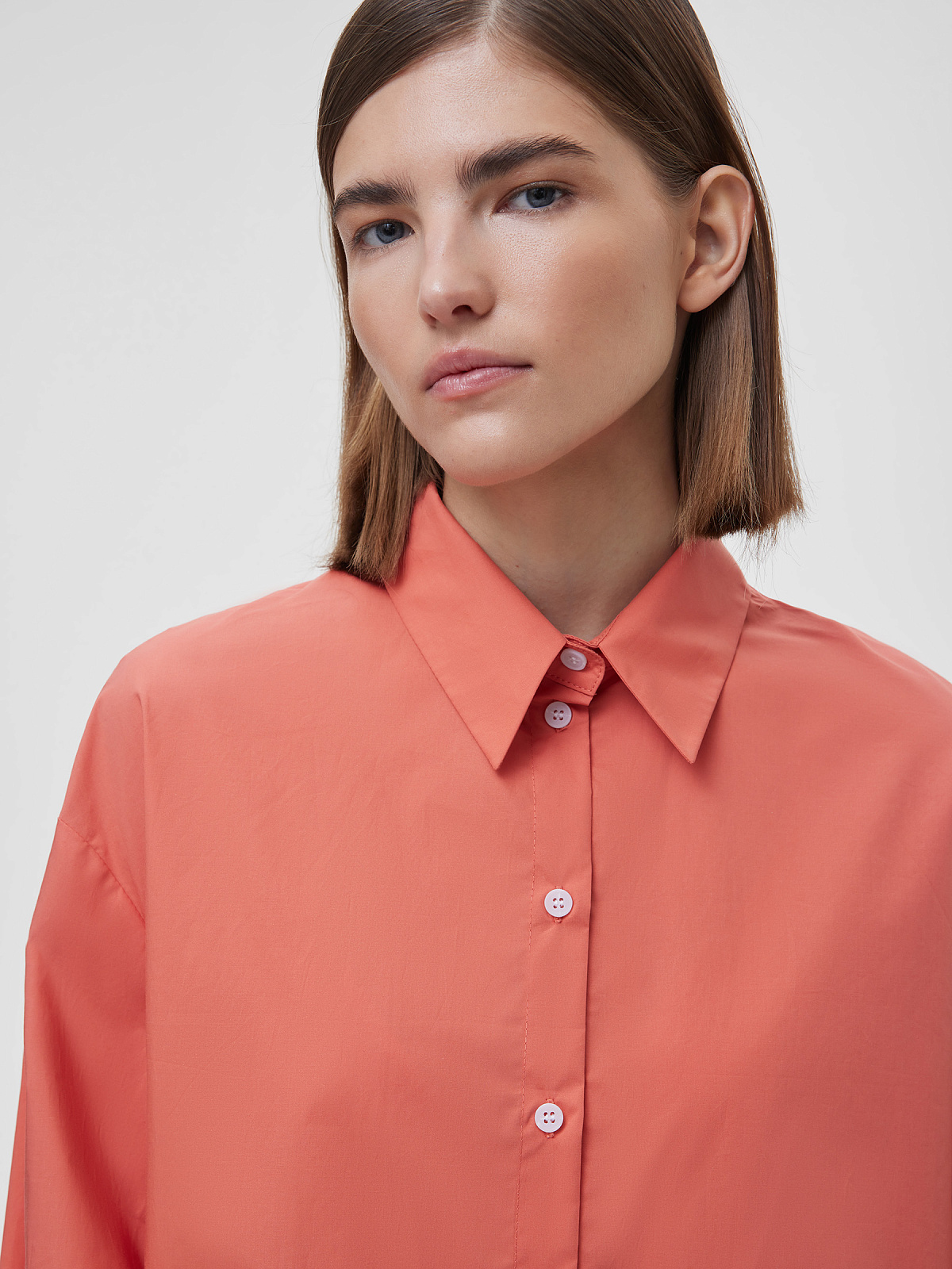 Базовая рубашка, без которой невозможно представить современный гардероб. Классическая застежка на пуговицы и воротником рубашечного типа придает ей элегантный вид. Спущенные плечи и рукава с защипами на манжетах добавляют модели оригинальности и современности.