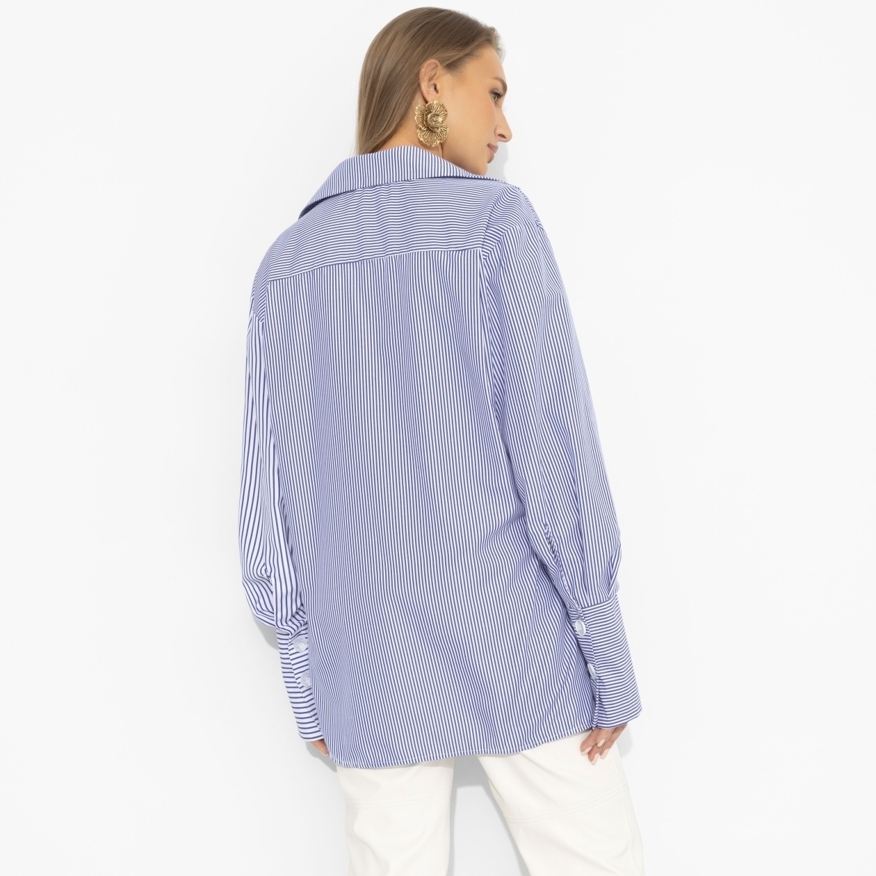 Она не старается быть первой – у неё это получается автоматически. Как у Зендеи на пресс-турах к новому фильму: свежо, умно, с лёгкой игрой на контрастах. Асимметричный крой привлекает внимание, голубая полоска добавляет шика, свободный объём делает силуэт современным и чуть дерзким. Мягкая линия плеча, акцентные манжеты – и вот ты уже не в образе, а в своей главной роли.