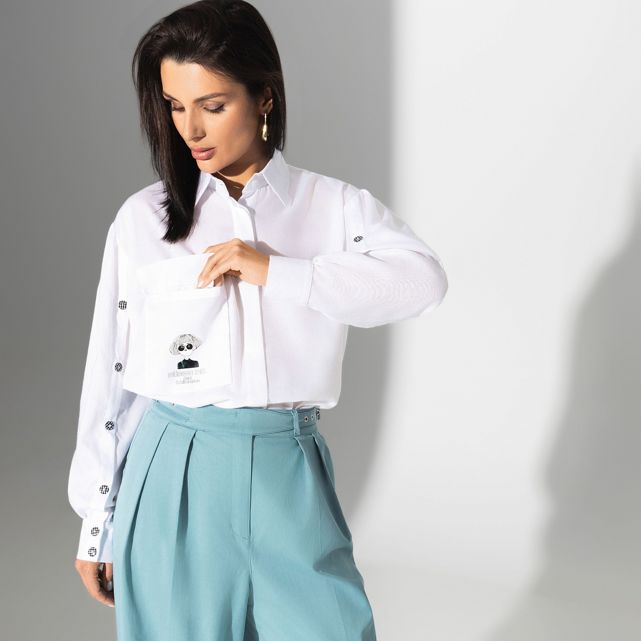 Белая рубашка больше, чем предмет делового гардероба. Настоящая модная жемчужина – трендовые рукава с пуговицами для WOW-эффекта и, конечно, восхитительная ткань и качественный пошив.