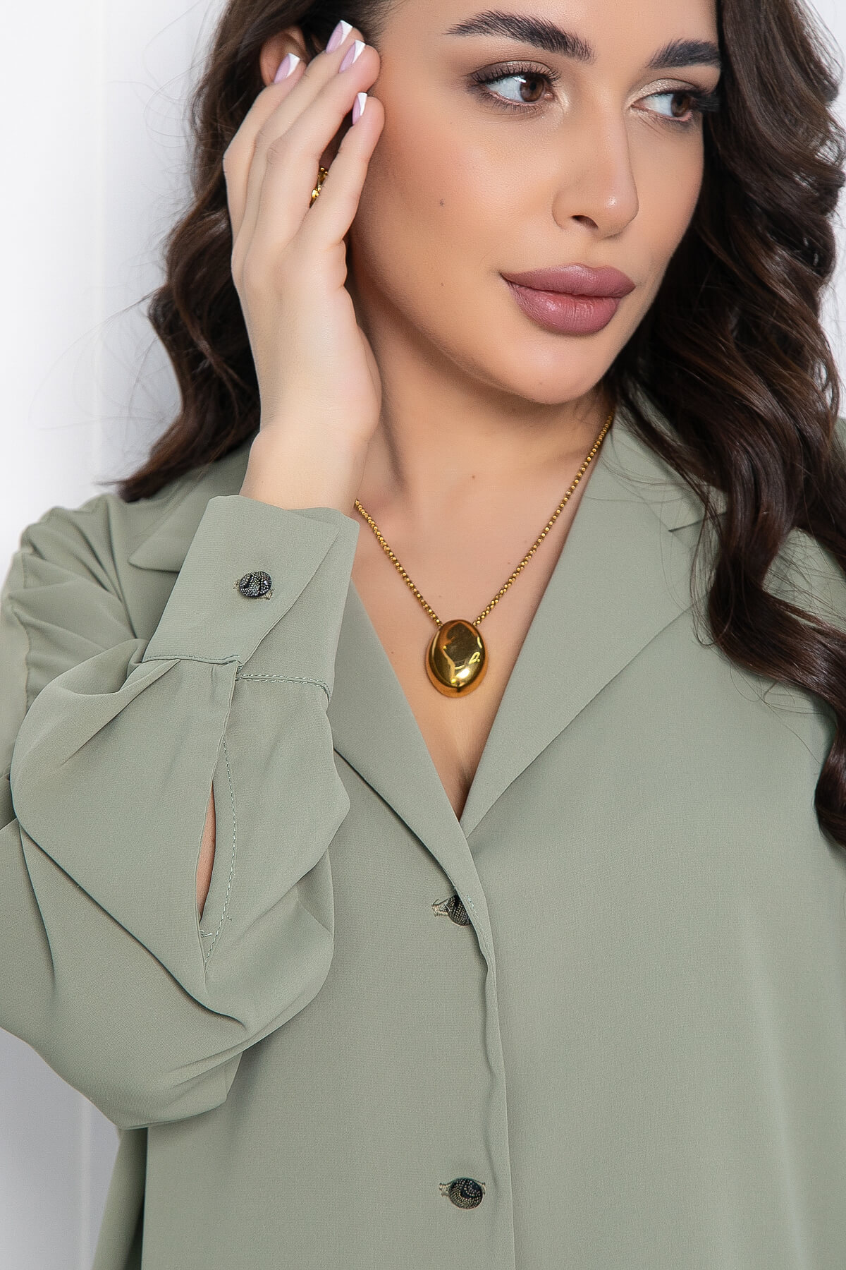Элегантная оливковая рубашка — это ваш незаменимый спутник в любых жизненных обстоятельствах, будь то деловая встреча, официальный обед или расслабленный уикенд. Изготовленная из ткани, напоминающую атлас, но без блеска. Отложной ворот и манжеты завершают образ, а застежка на пуговицы делает рубашку практичной в использовании.
