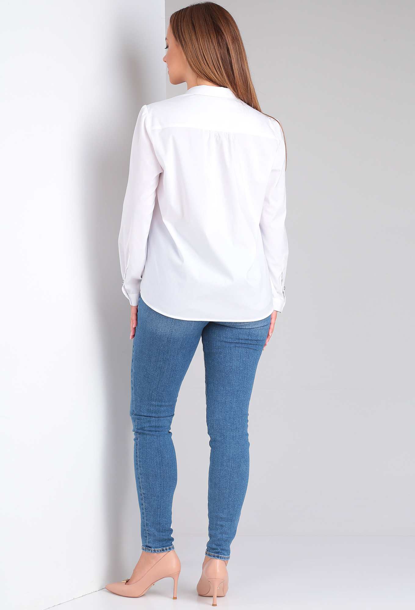 Модель: Твин 7651 белый Рост: 170..показать см (девушка на фото ростом 170см) Сезон: Круглогодичный Тип ткани: Хлопок 76%, полиэстер 22%, эластан 2%Блузка свободного силуэта с отложным воротником на стойке рубашечного покроя. По переду нагрудные вытачки. Центральная потайная застежка на петли-пуговицы. Рукав втачной со сборкой по окату, на манжете. Спинка на кокетке со сборкой. В боковых швах небольшие разрезы.