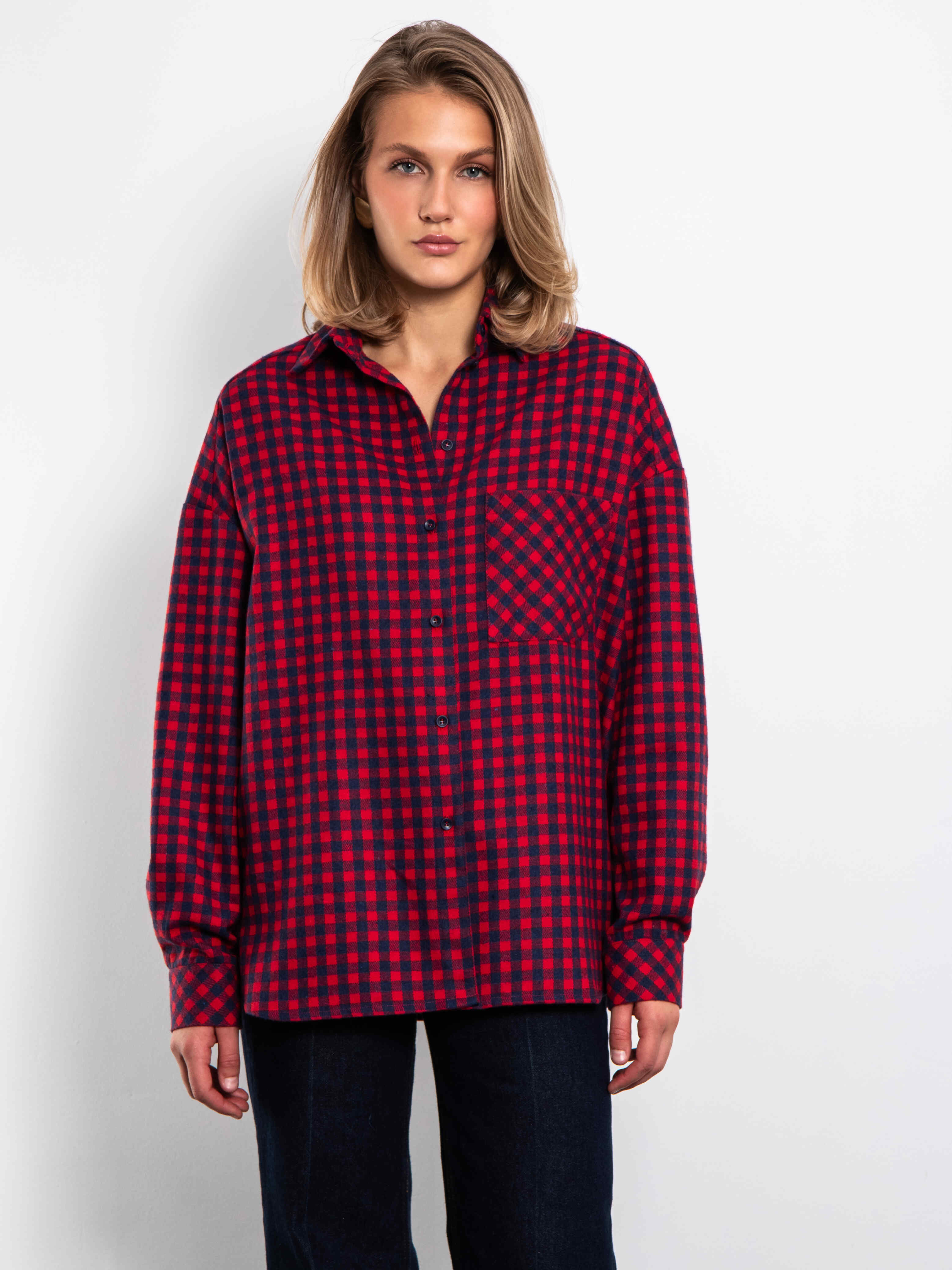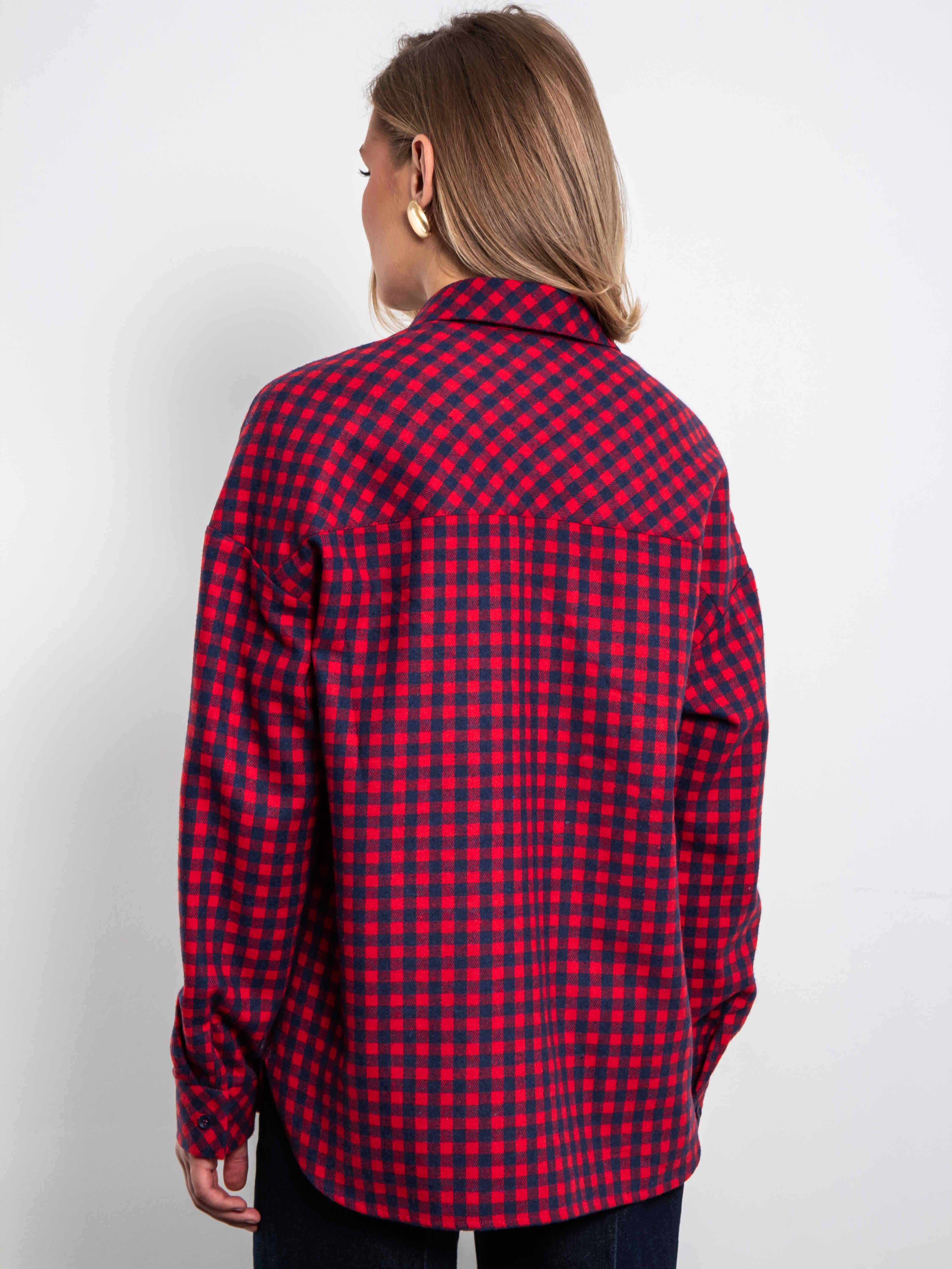 Универсальная клетчатая рубашка oversize с нагрудным карманом. Застегивается на пуговицы. Выполнена из фланели с добавлением хлопка.