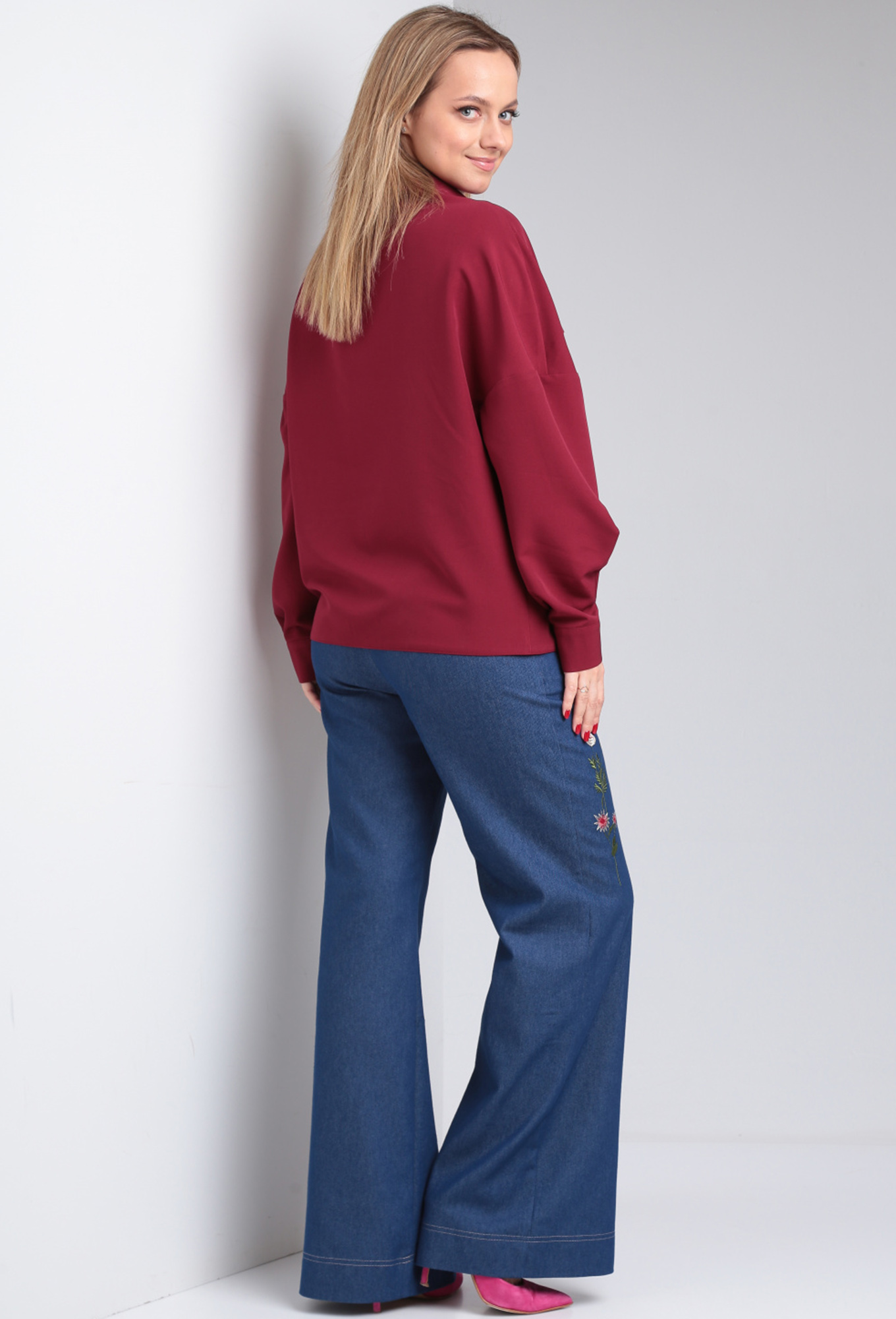 Модель: Виола Стайл 1180 бордо Ро..показатьст: 164 см (девушка на фото ростом 170см) Сезон: Круглогодичный Тип ткани: ПЭ 64%, вискоза 33%, эластан 3%Рубашка свободного силуэта, с накладными карманами с клапаном и встречной складкой. В рубашке спущенное плечо, рукав спереди с разрезом.