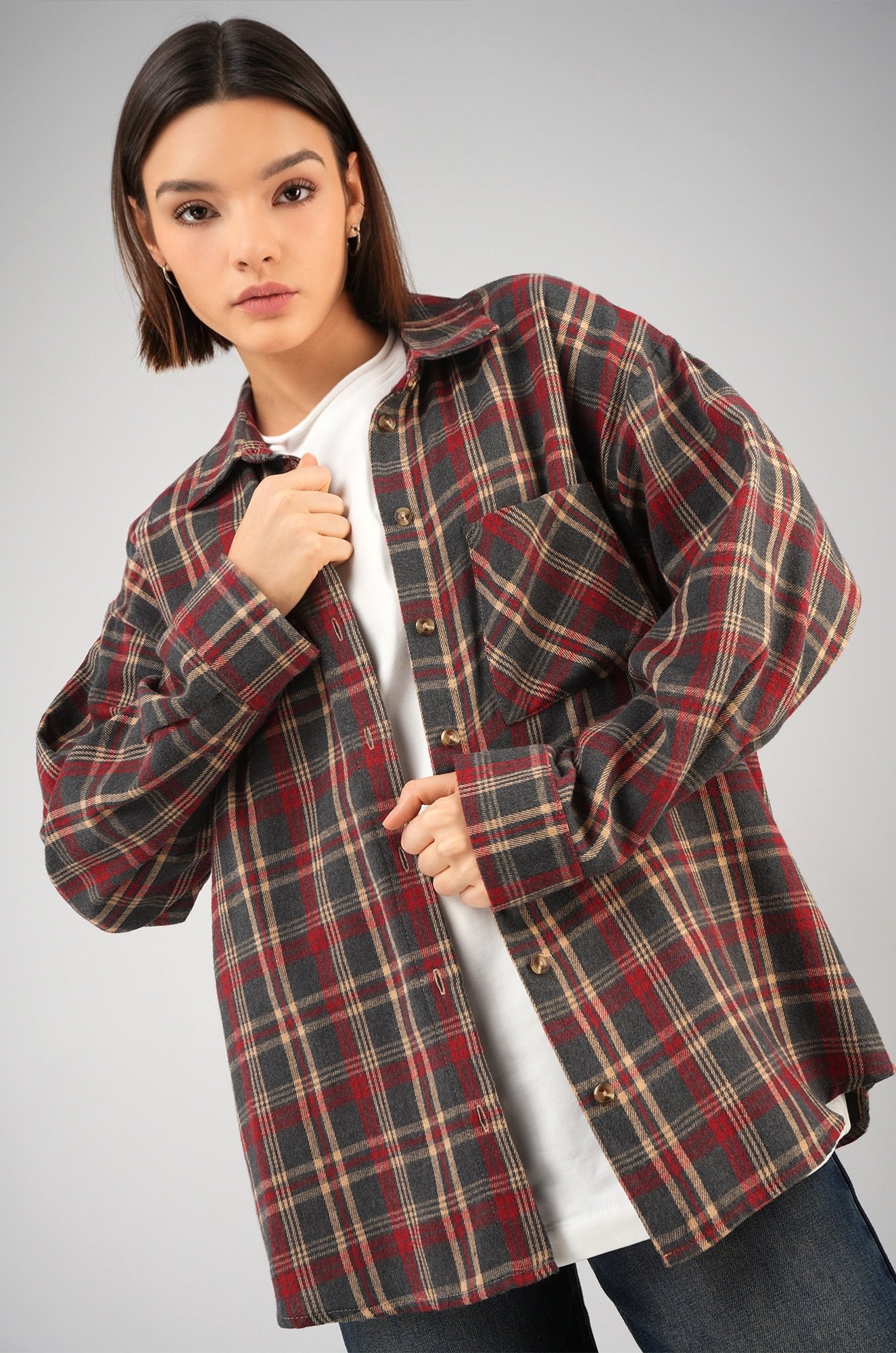 Женская рубашка оверсайз в клетку — про уверенность, комфорт и стиль без лишнего старания. Мягкая хлопковая ткань, свободный крой и насыщенный бордово-коричневый оттенок создают образ, который не захочется снимать. Удлиненная рубашка в клетку подходит на любой тип фигуры.