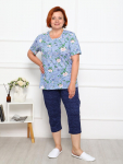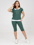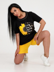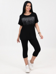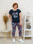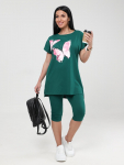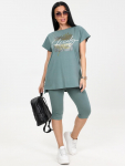 Костюм состоит из футболки и леггинсов. Футболка женская оверсайз, удлиненная. Леггинсы длиной до колен с удобным эластичным поясом.