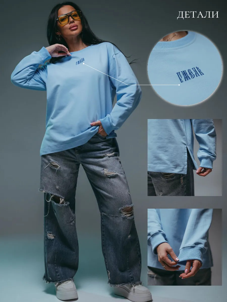 Свитшот прямой - оверсайз со спущенным плечом и длинным втачным рукавом.