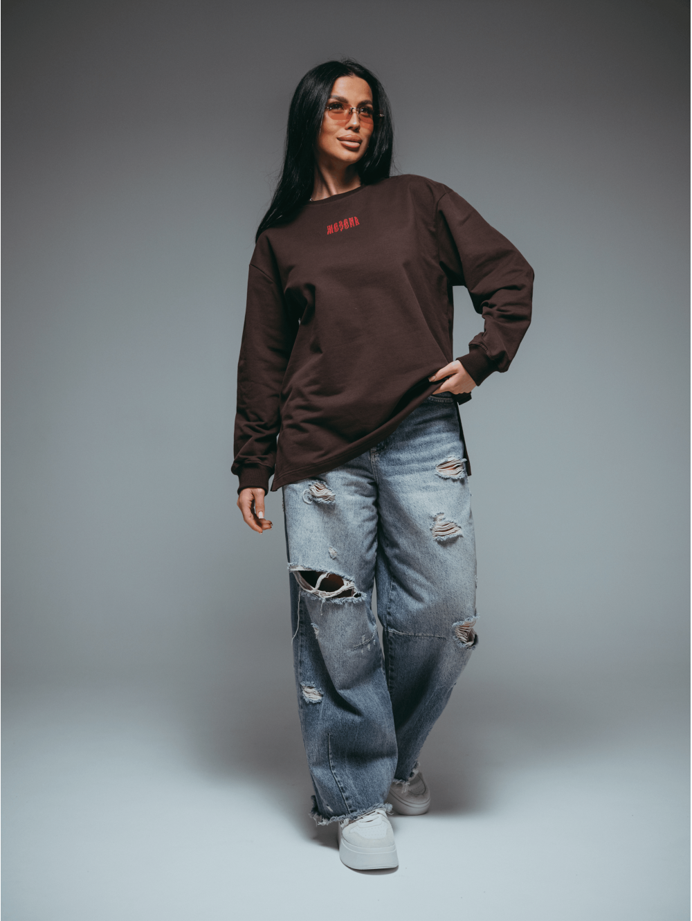 Свитшот прямой - оверсайз со спущенным плечом и длинным втачным рукавом.