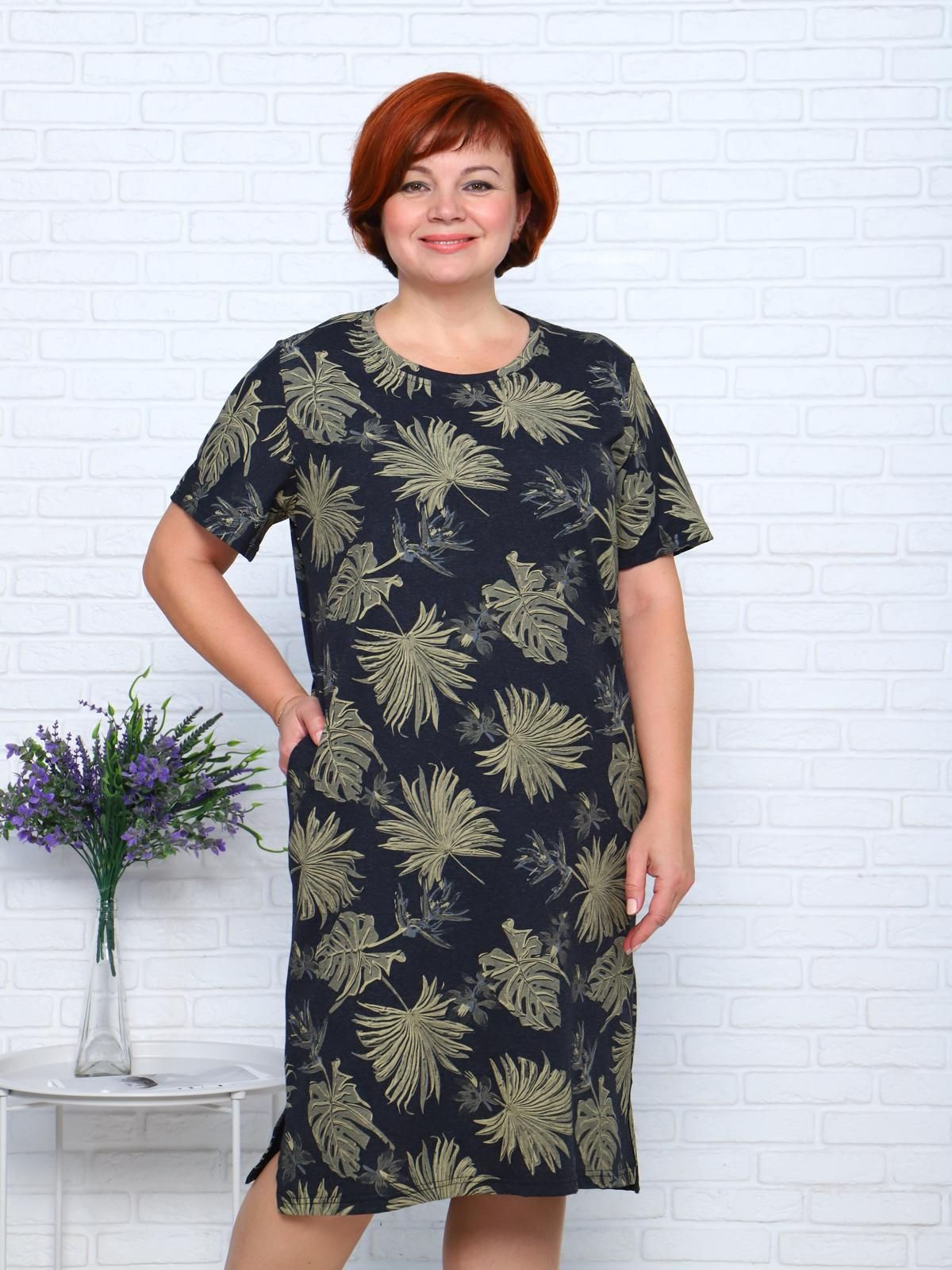 Туника домашняя свободного кроя. Рукав втачной, горловина обработана обтачкой, в боковых швах карманы. Снизу по бокам не большие разрезы.