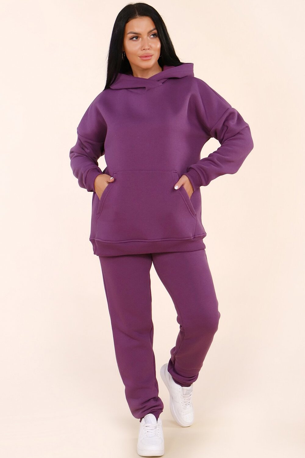 Комфорт. Оверсайзный крой худи и свободные брюки обеспечивают полную свободу движений. Эластичные манжеты на рукавах и штанинах надёжно фиксируют одежду и защищают от холода.