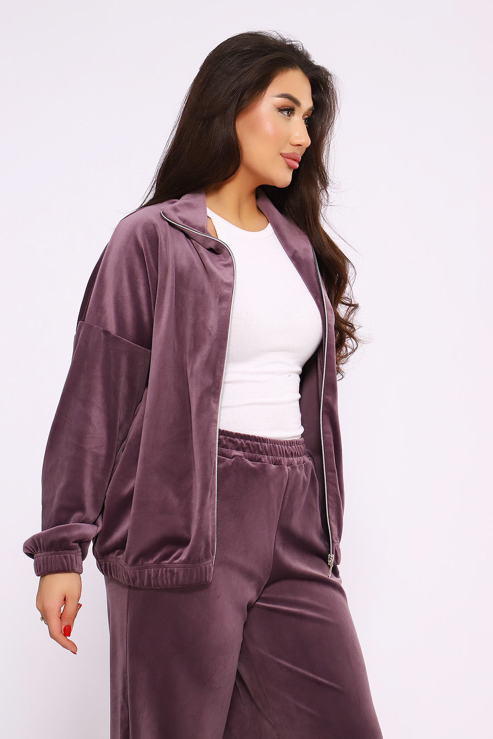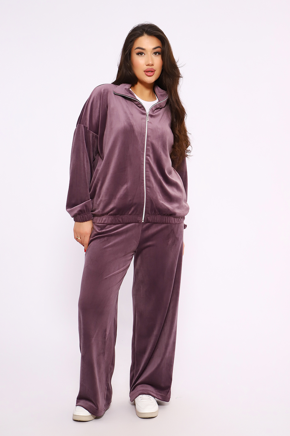 Этот велюровый прогулочный костюм идеальное сочетание шика нулевых и современного комфорта. Мягкая фактура ткани с деликатным переливом делает образ дорогим и уютным одновременно. Цвет: лиловый;темно-синий; Материал: велюр;велюр; Состав: п/э 95%, спандекс 5%.