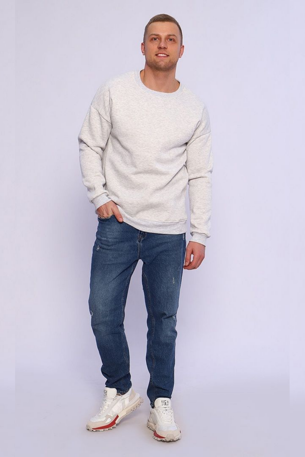 Мужской свитшот в цвете серый меланж это базовая модель свободного кроя (оверсайз), выполненная из плотного футера с начесом. Такая одежда хорошо удерживает тепло и подходит для прохладной погоды. Цвет: серый меланж; Материал: футер 3-х нитка с начесом;футер 3-х нитка с начесом; Состав: хлопок 70%, п/э 30%.