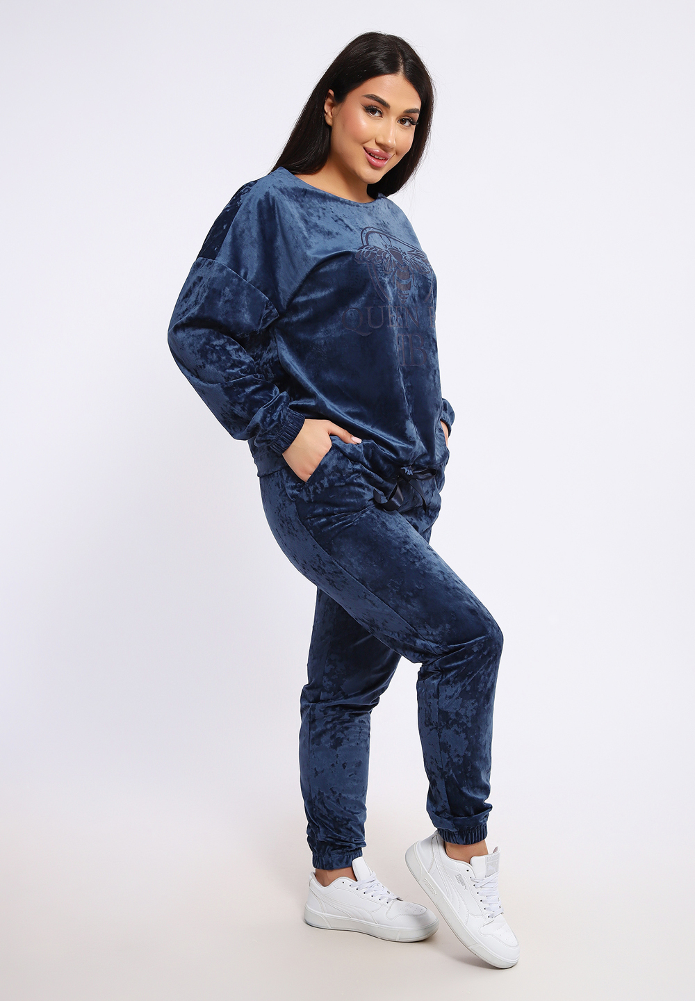 Стильный костюм с брюками из мягкого и приятного на ощупь велюра 100% полиэстер. Удобный и современный дизайн дополнен ярким принтом на груди, который придает образу индивидуальность и оригинальность. Идеальный выбор для тех, кто ценит комфорт и стиль в повседневной или casual-обстановке. Цвет: синий;бирюзовый;оливковый;лаванда; Материал: велюр;велюр; Состав: п/э 100%.