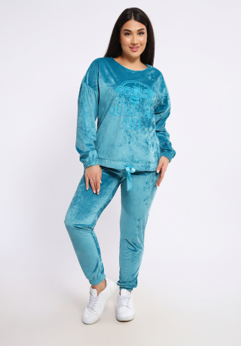 Стильный костюм с брюками из мягкого и приятного на ощупь велюра 100% полиэстер. Удобный и современный дизайн дополнен ярким принтом на груди, который придает образу индивидуальность и оригинальность. Идеальный выбор для тех, кто ценит комфорт и стиль в повседневной или casual-обстановке.