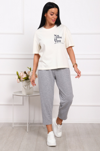 Стильный костюм с брюками из мягкого и приятного на ощупь велюра 100% полиэстер. Удобный и современный дизайн дополнен ярким принтом на груди, который придает образу индивидуальность и оригинальность. Идеальный выбор для тех, кто ценит комфорт и стиль в повседневной или casual-обстановке.