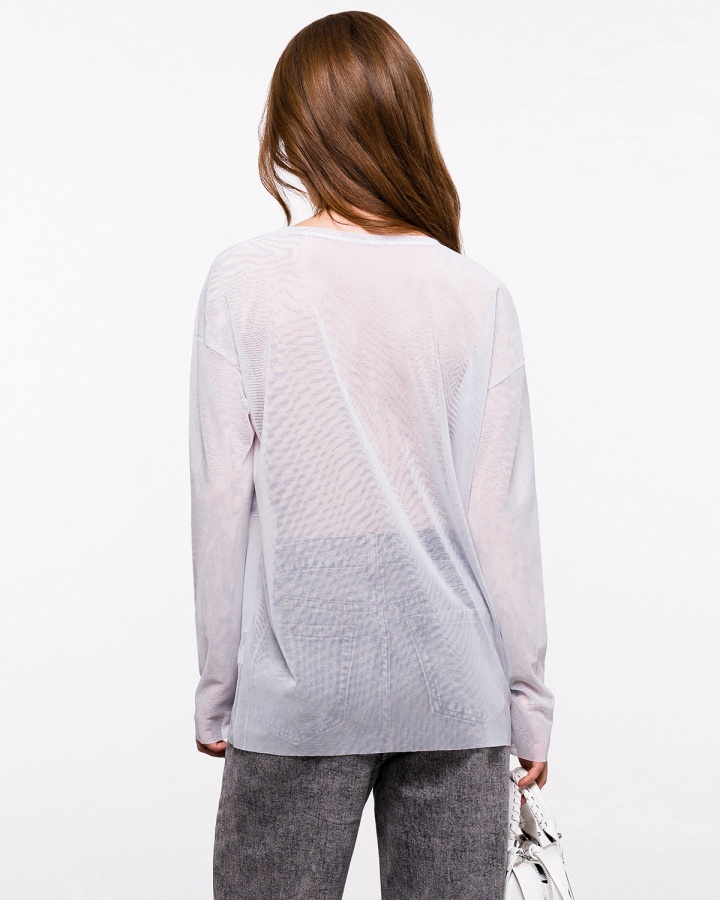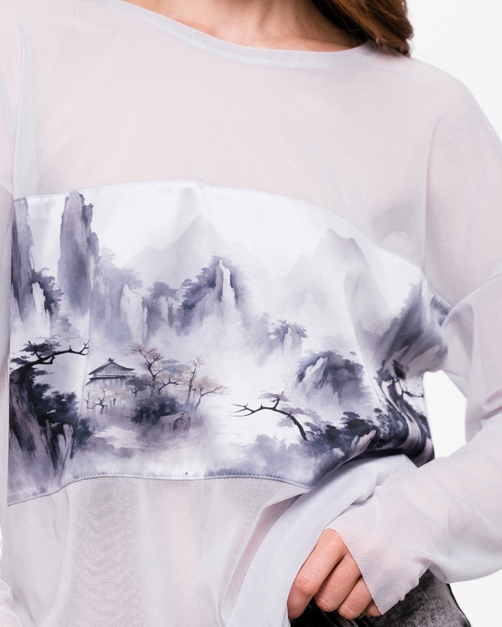 Лонгслив женский из сетки с принтом - трендовый элемент гардероба для создания интересных многослойных образов. Его можно надевать под платье, жакет, кардиган, жилет или даже футболку. Принт - узор. Лонгслив из сеточки очень приятен для тела. Он как будто обволакивает кожу. Материал мало тянется.