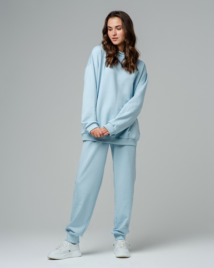 Спортивные женские штаны из хлопкового футера трёхнитки прекрасно дополнят ваш повседневный образ. Материал хорошо сохраняет форму и не скатывается.