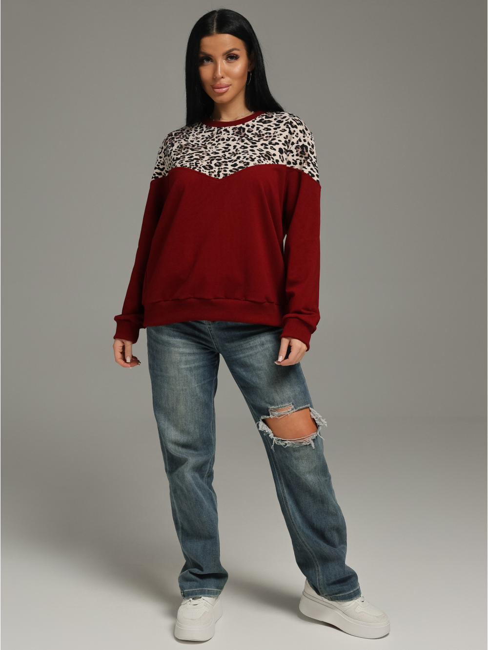 Свитшот прямого силуэта, c длинным втачным рукавом на манжете. Полочка и спинка с фигурными кокетками.