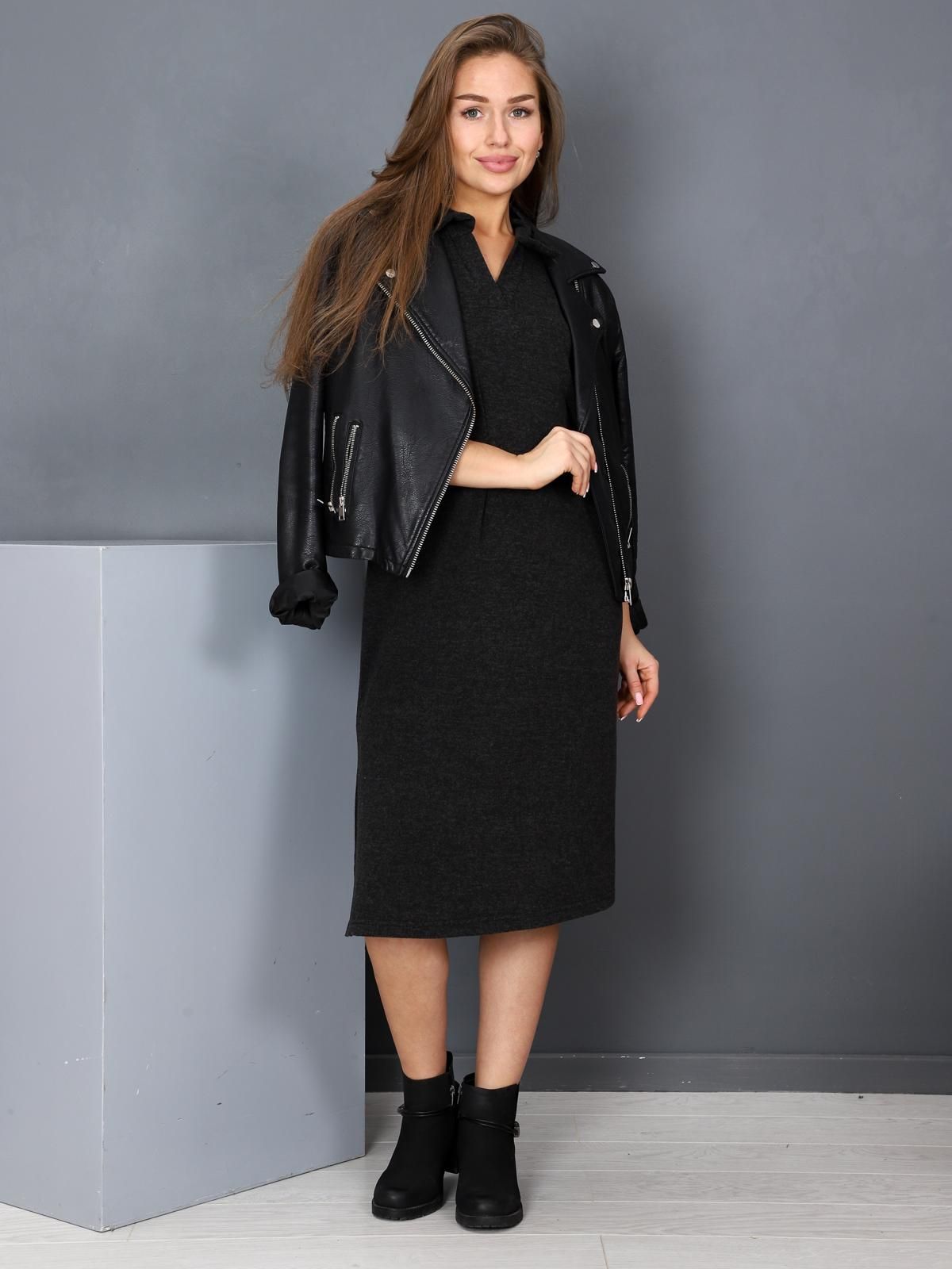 Удлиненное женское платье из ангоры кашемир, прямого силуэта, с отложным воротником. Рукав втачной длинный, разрезы в боковых швах.