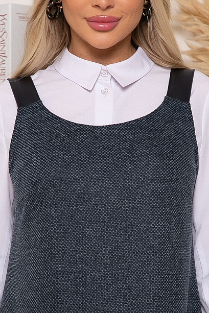 Сарафан трапецевидного силуэта из трикотажного полотна с лямками из эко кожи.