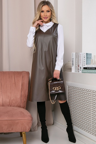 Сарафан из эко замши трапецевидного силуэта.