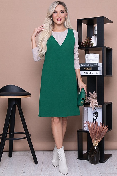 Сарафан А-образного силуэта из плотного хорошо держащего форму трикотажного полотна.
