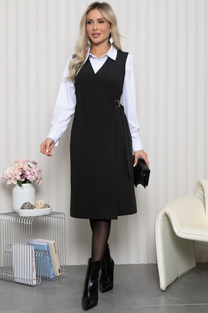 * Сарафан из костюмной ткани полуприлегающего силуэта. Перед с полным функциональным запахом застегивающимся на пряжку, внутри фиксируется  регулируемой резиной с петлями.
