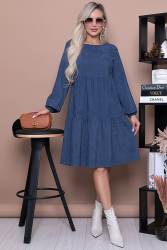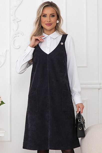 * Сарафан трапецевидного силуэта из вельвета с функциональными накладными карманами по переду. Цвет: т.синий.